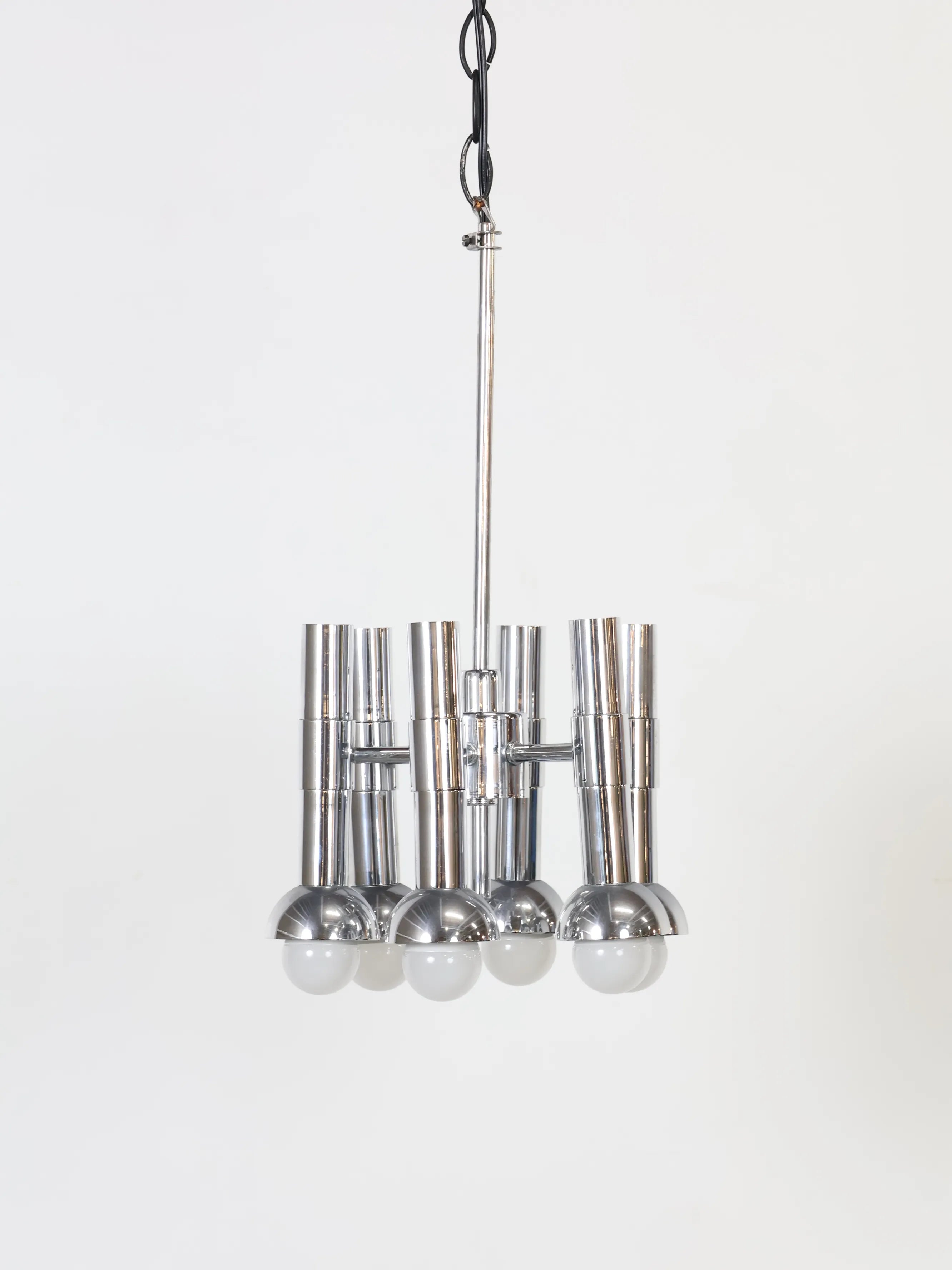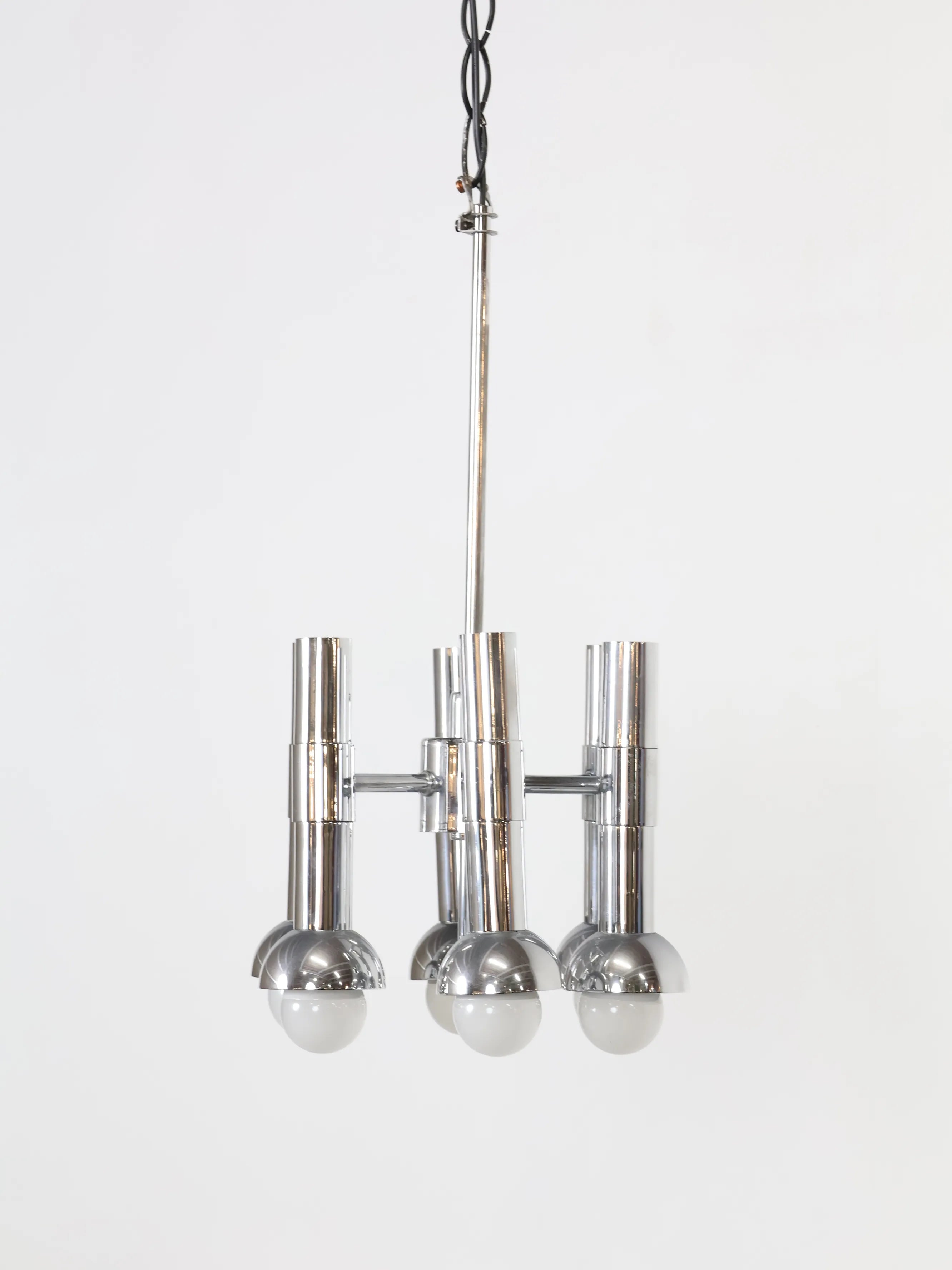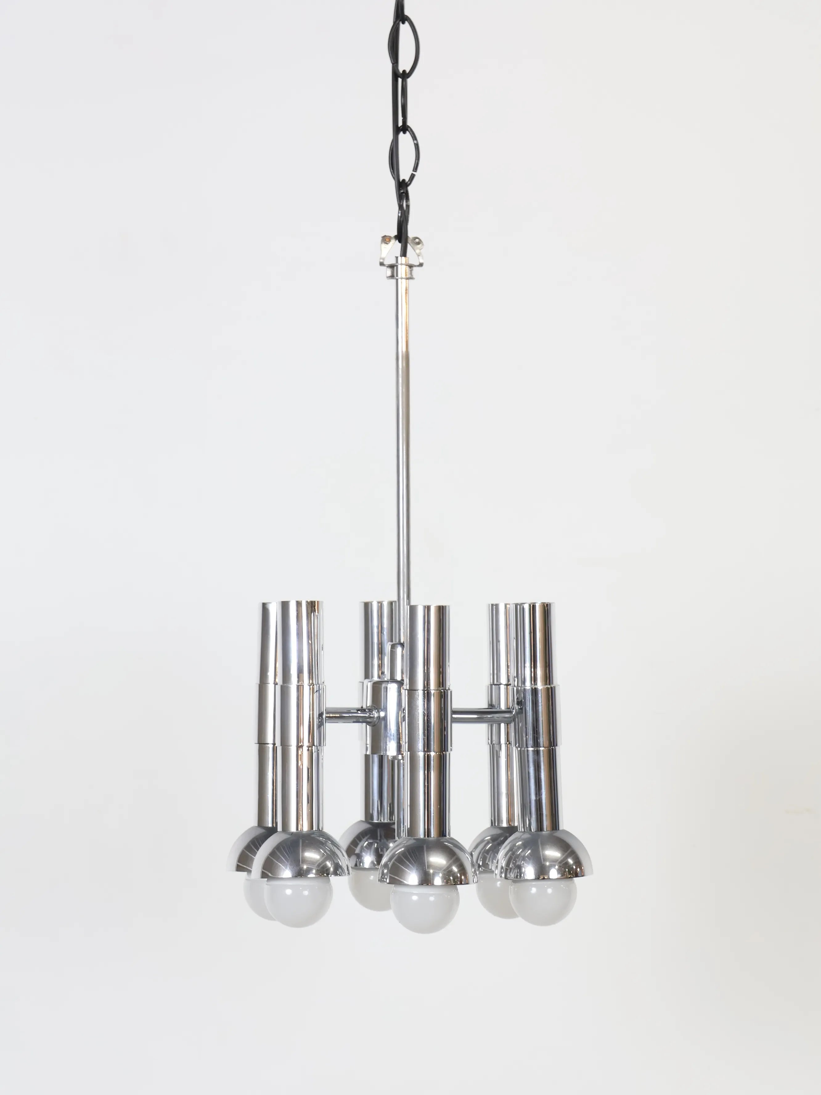 オランダより買い付けました1960年代-70年代のメタルベーススペースエイジ6灯シャンデリアです。