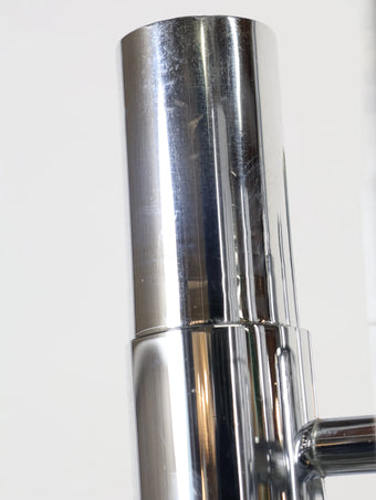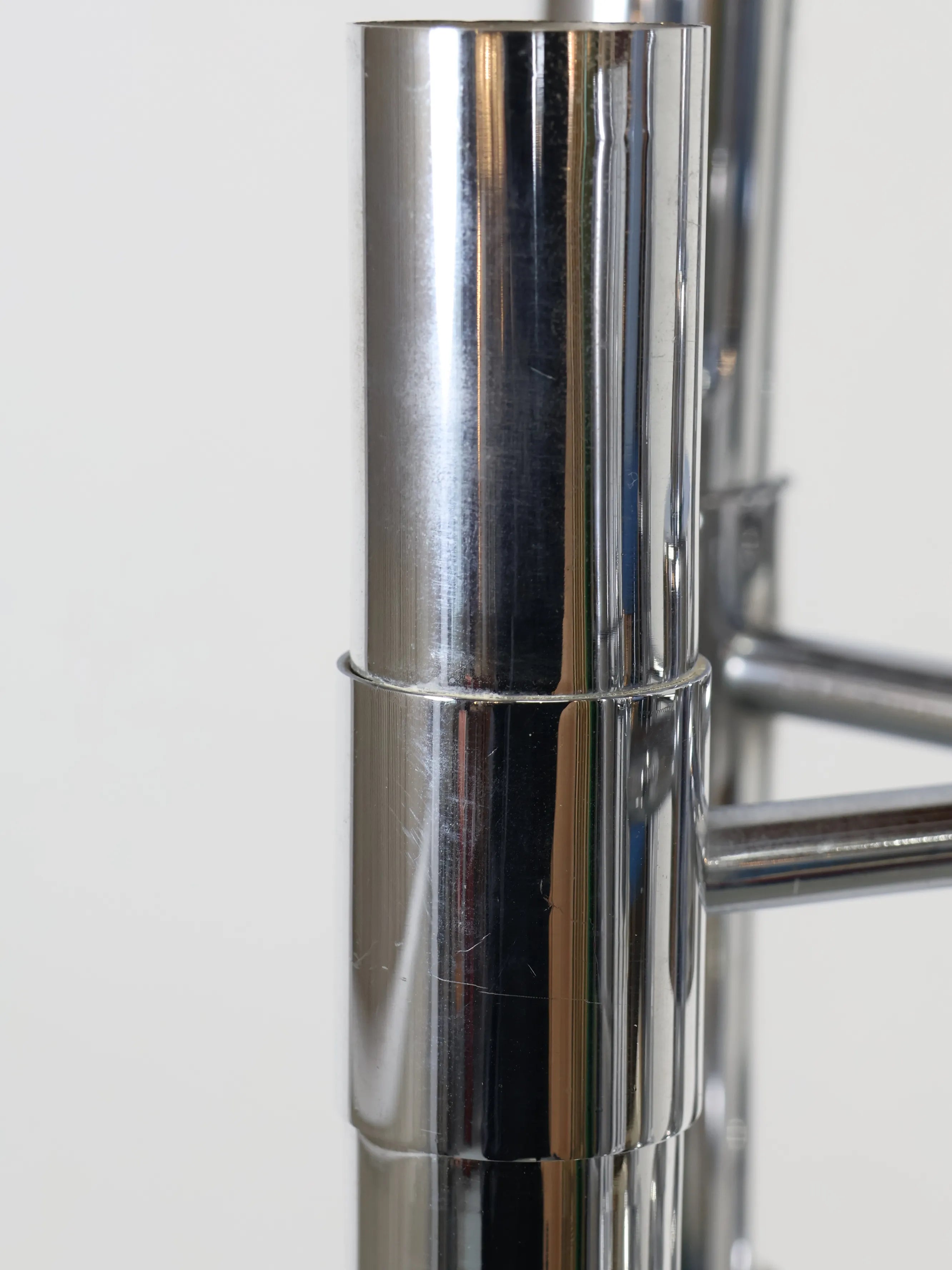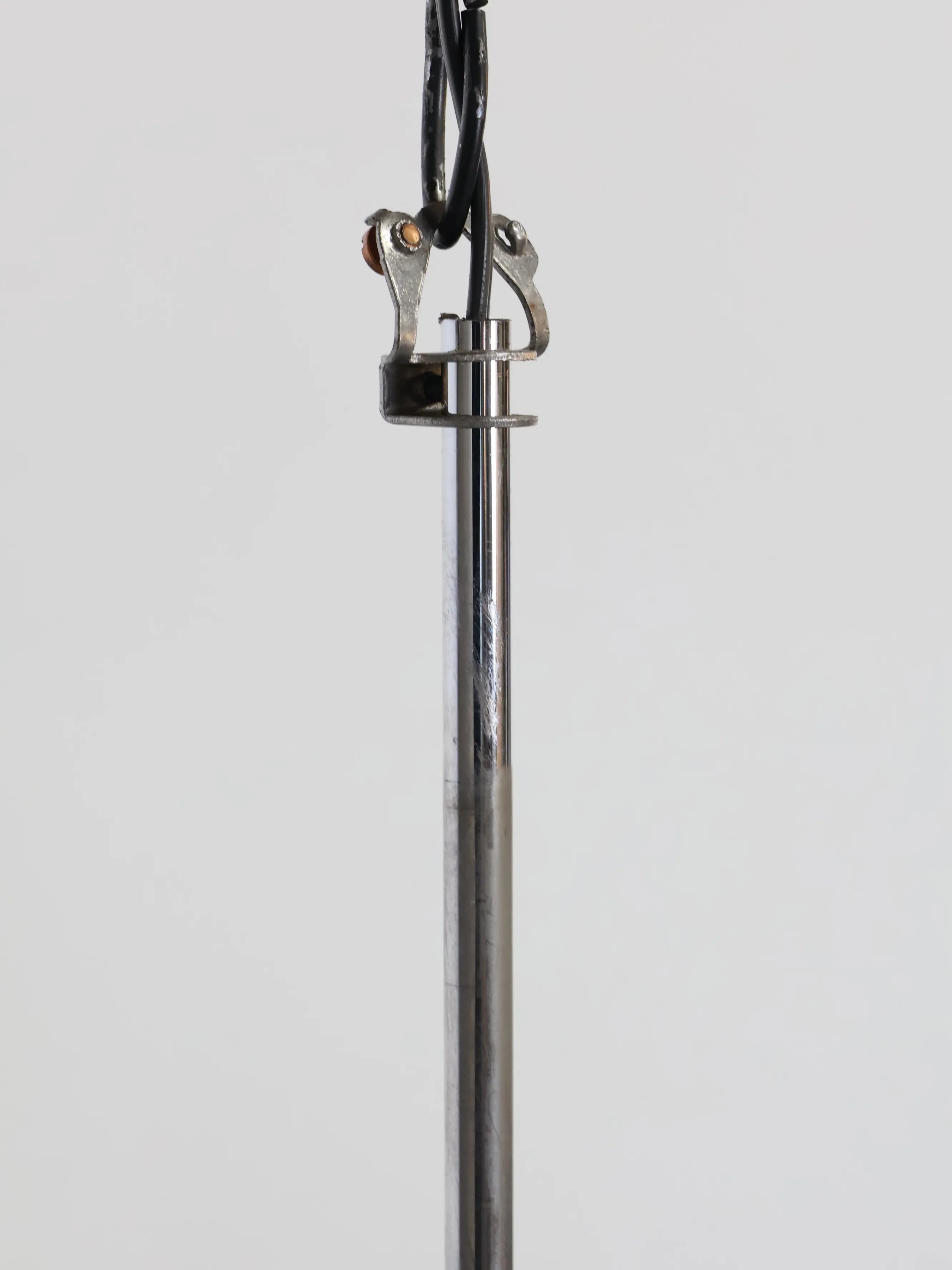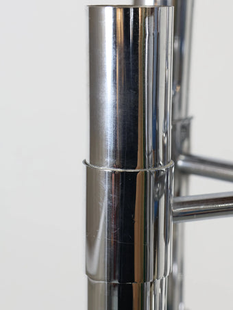 下に向かって伸びるメタルベースのシェードが近代的でポストモダンを感じるこの年代ならではのスペーシーなデザイン。