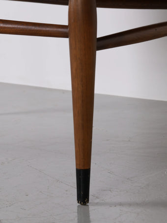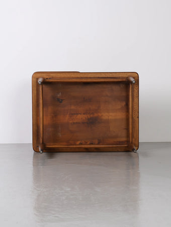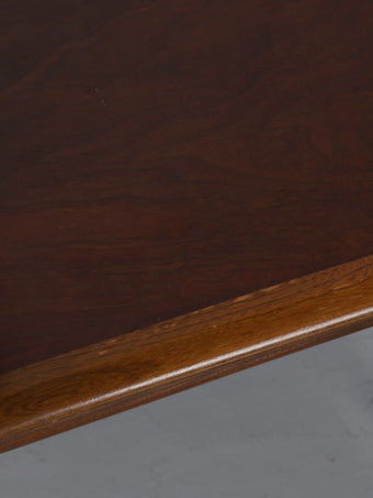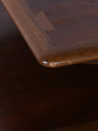 2種類の木材を組み木したとても手の込んだ作りで、その洗礼されたデザインや木目の綺麗さも相まって年々入手が難しくなっている貴重なテーブルです。