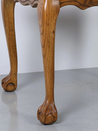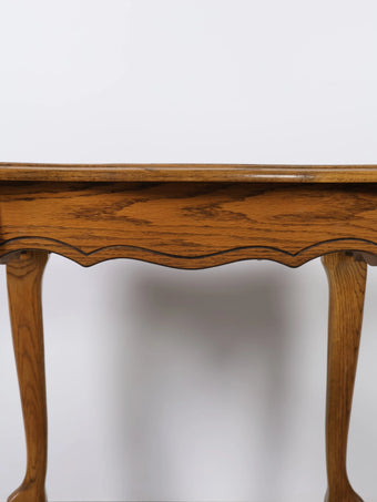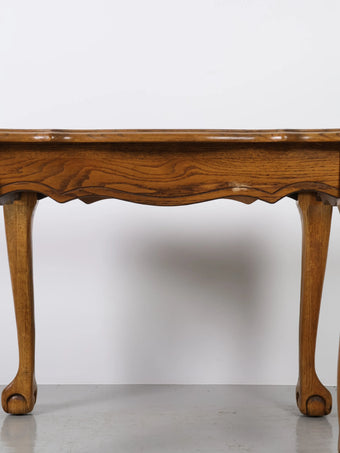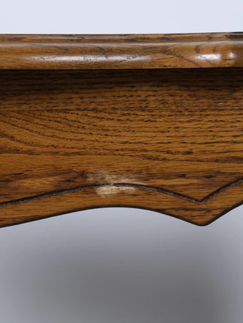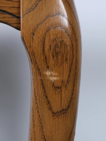 独特な天板の形状や湾曲した脚のデザイン、はっきりと浮き出た木目など、細部まで手の込んだディテールが雰囲気のある逸品。