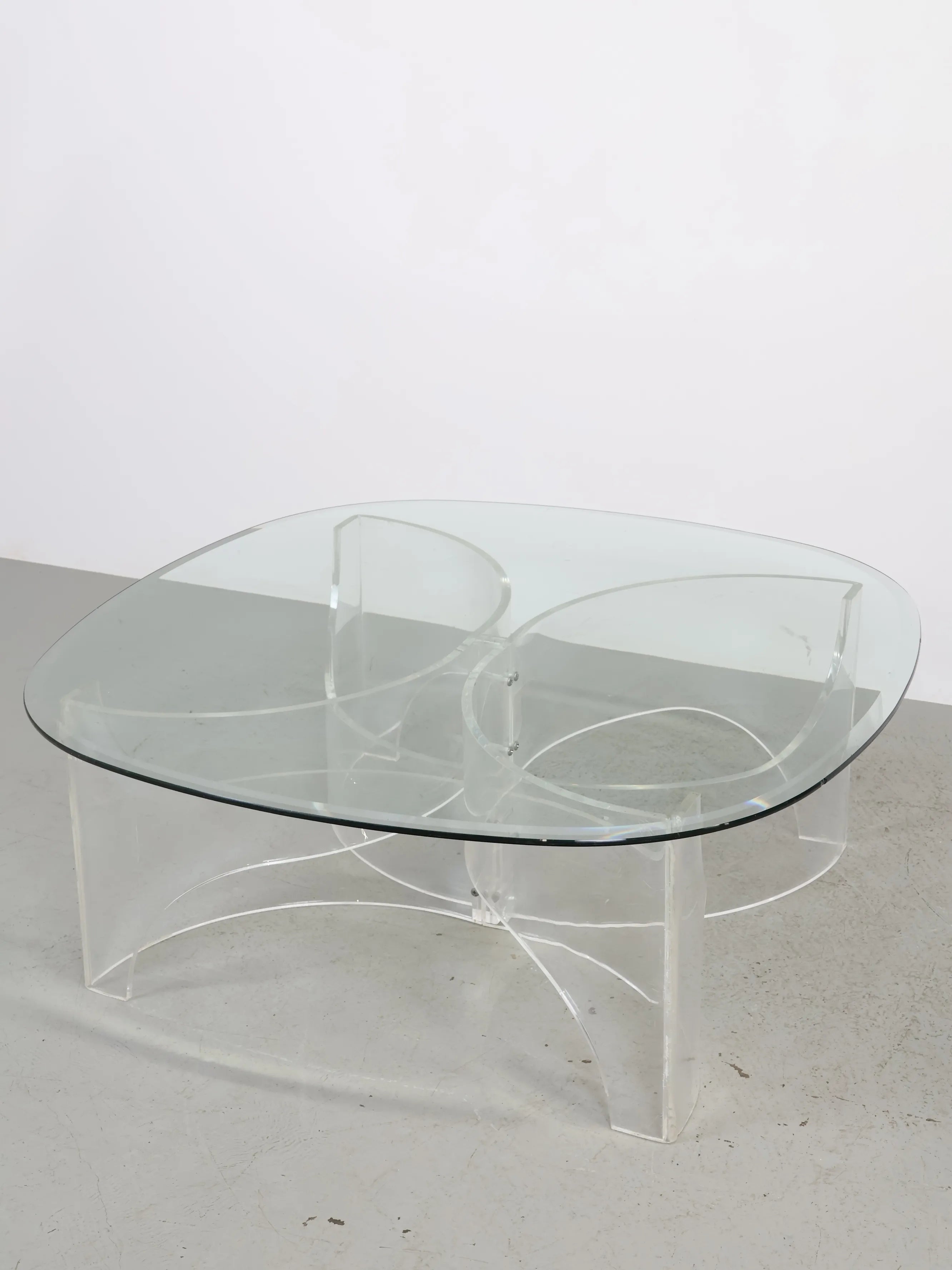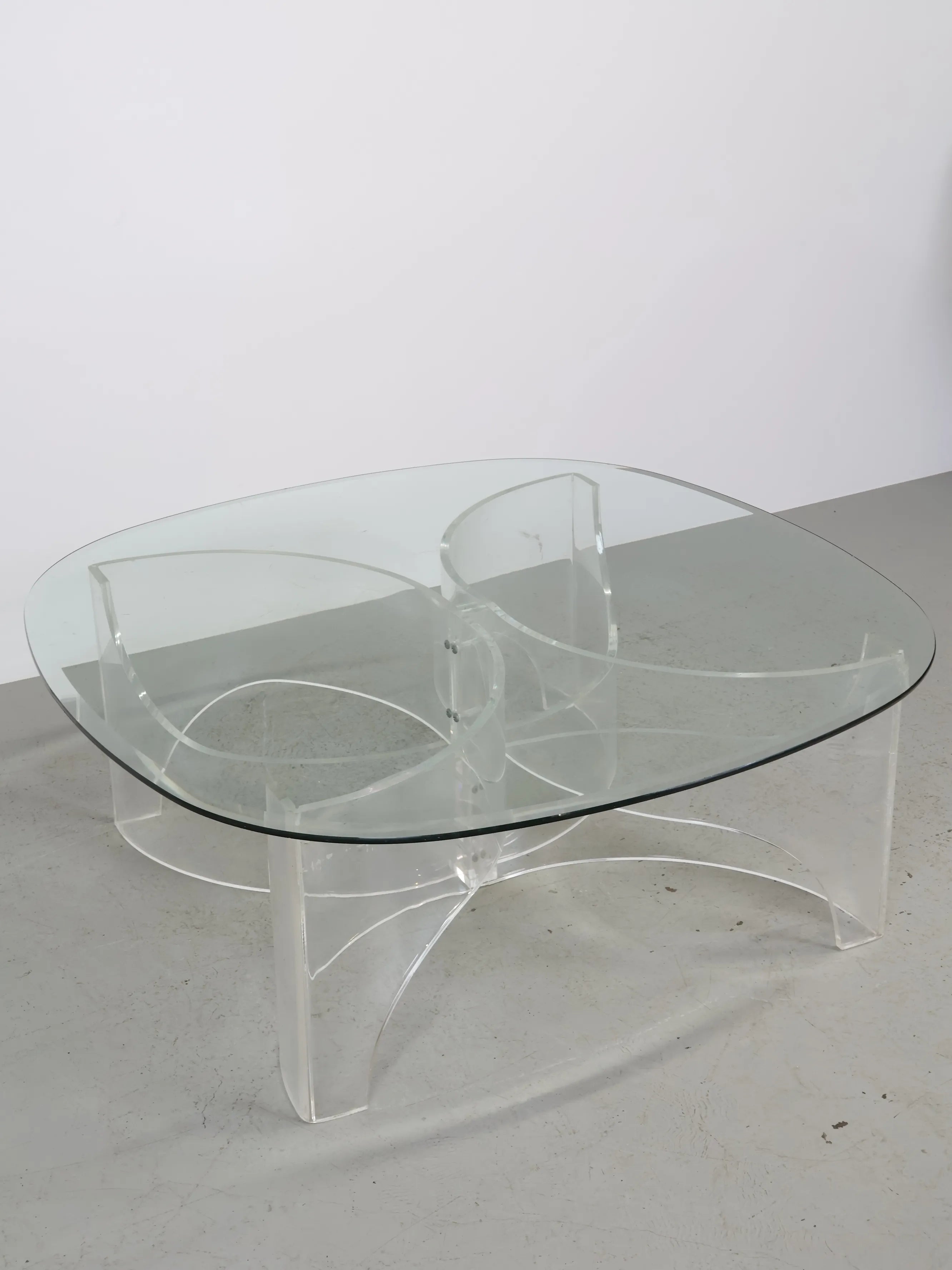 1970 - 80年代 ヴィンテージ ルーサイト ガラストップ センターテーブル