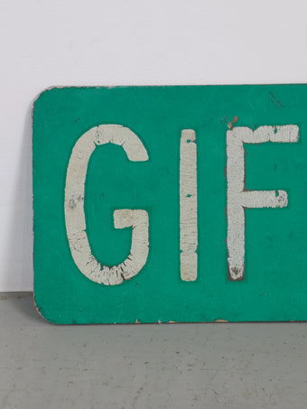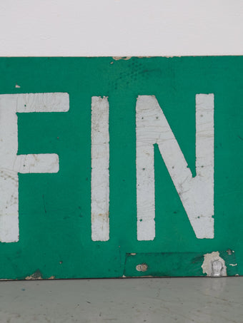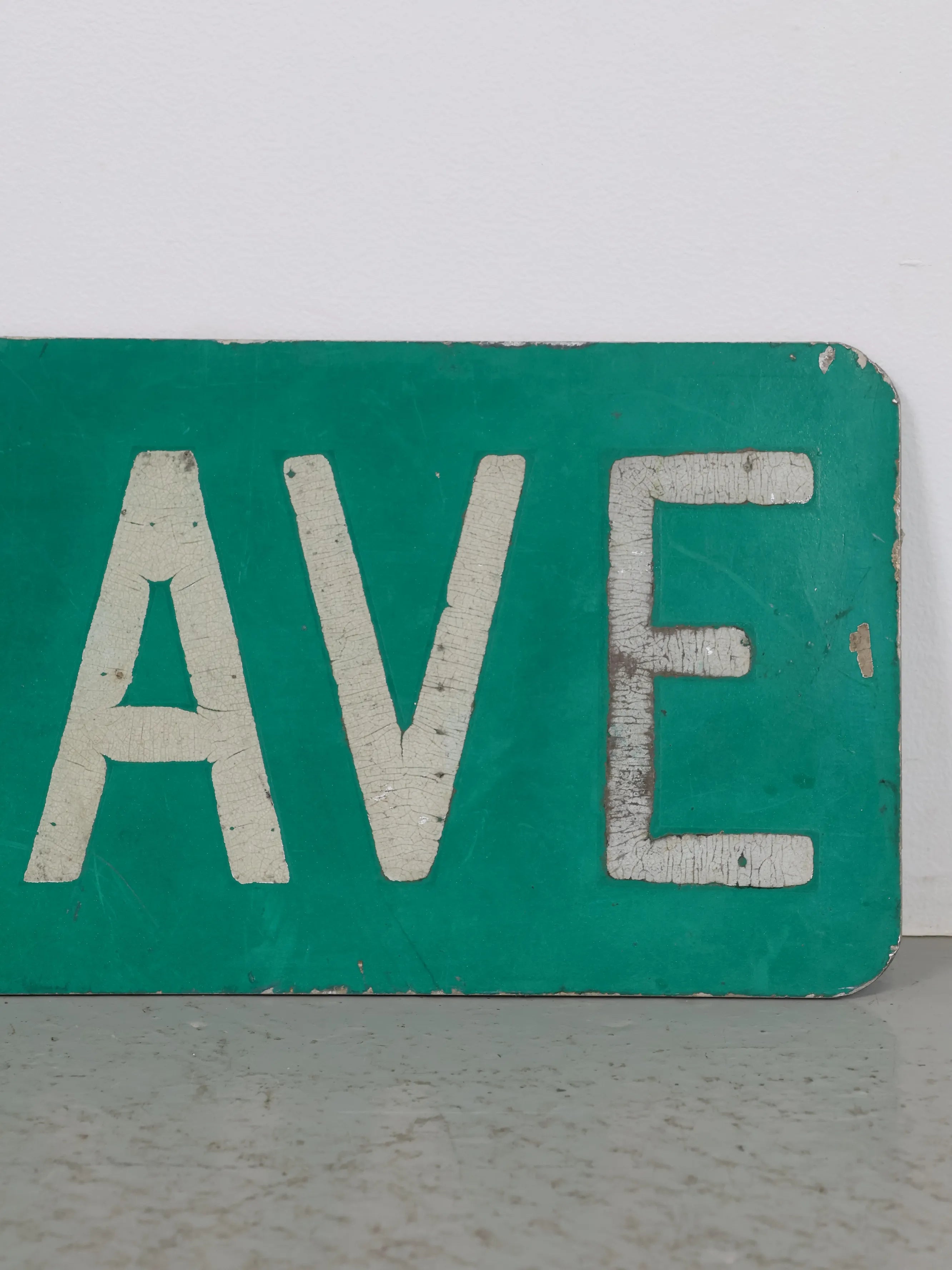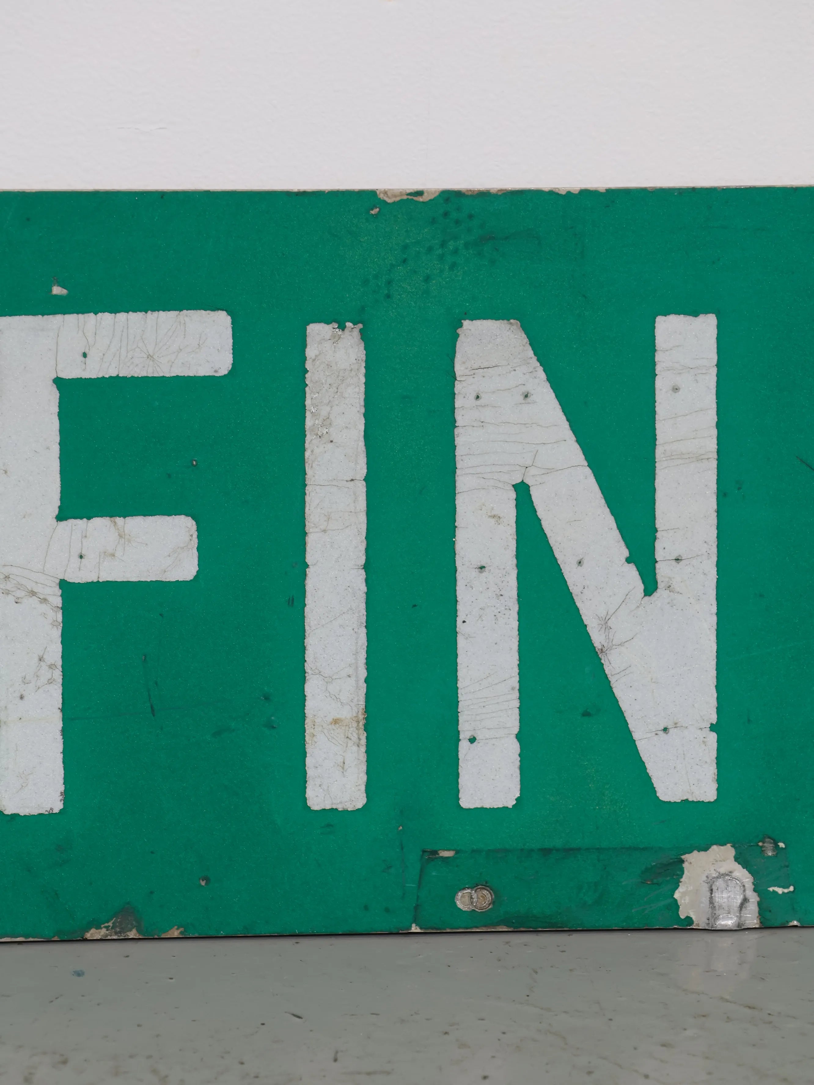 無駄のないシンプルなレイアウトながら、長年屋外で使われてきたことで生まれたペイントの剥がれや擦れが、このサインにしかないリアルな存在感を与えています。