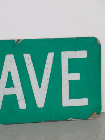 グリーンベースにホワイトのレタリングという、アメリカのストリートサインらしい王道の配色。