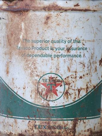 こちらは実際に使用されていたオイル缶で、グラフィックデザインと使い込んだことによる経年変化が雰囲気抜群です。