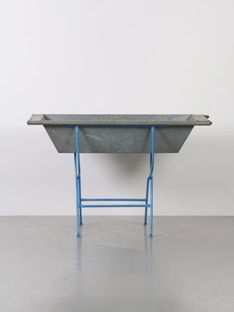 味わい深い亜鉛メッキのタブに脚元はアイアンスタンド付き。