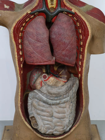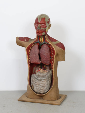 海外のアンティークショップなどではミッドセンチュリーやインダストリアルの空間とミックスしてディスプレイしてあることもよく見かけるヴィンテージの人体模型。