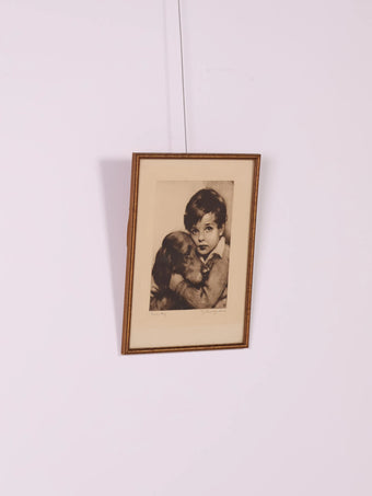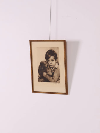 ヴィンテージ ウッド フレーム John Knowles Hare作 Sympathy プリント ガラスフェイス 壁掛け