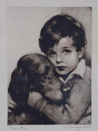 ドライポイントという版画の技法を用いた1918年に作成されたタイトル「Sympathy(同情)」のプリントになります。