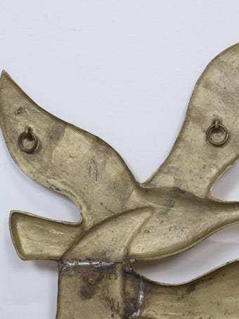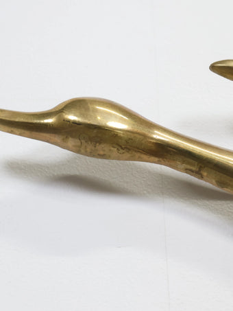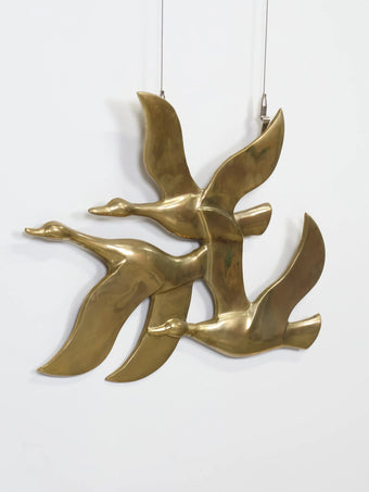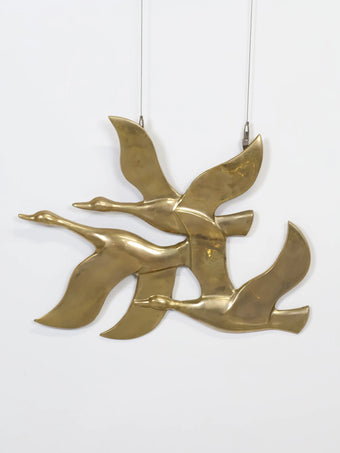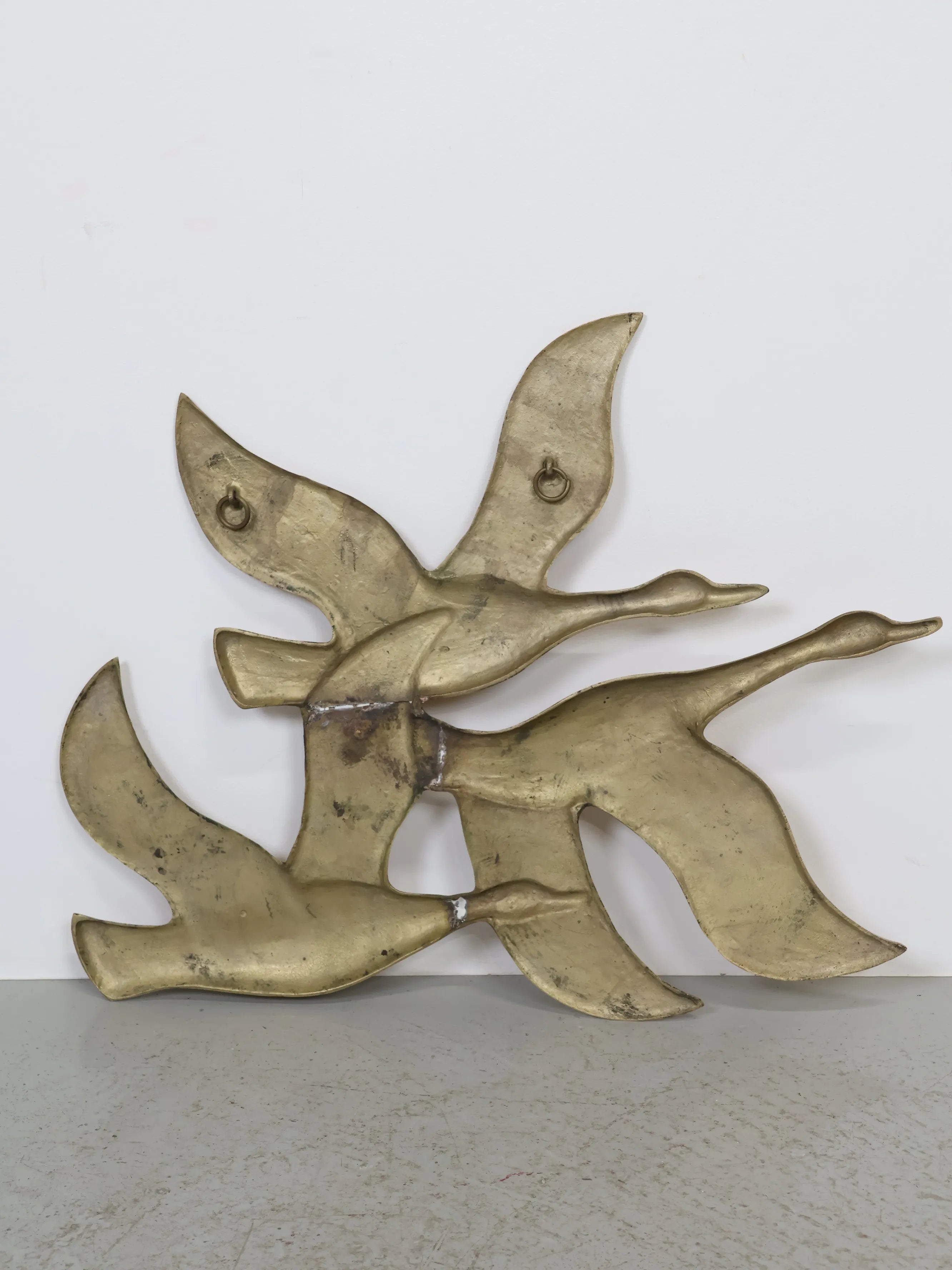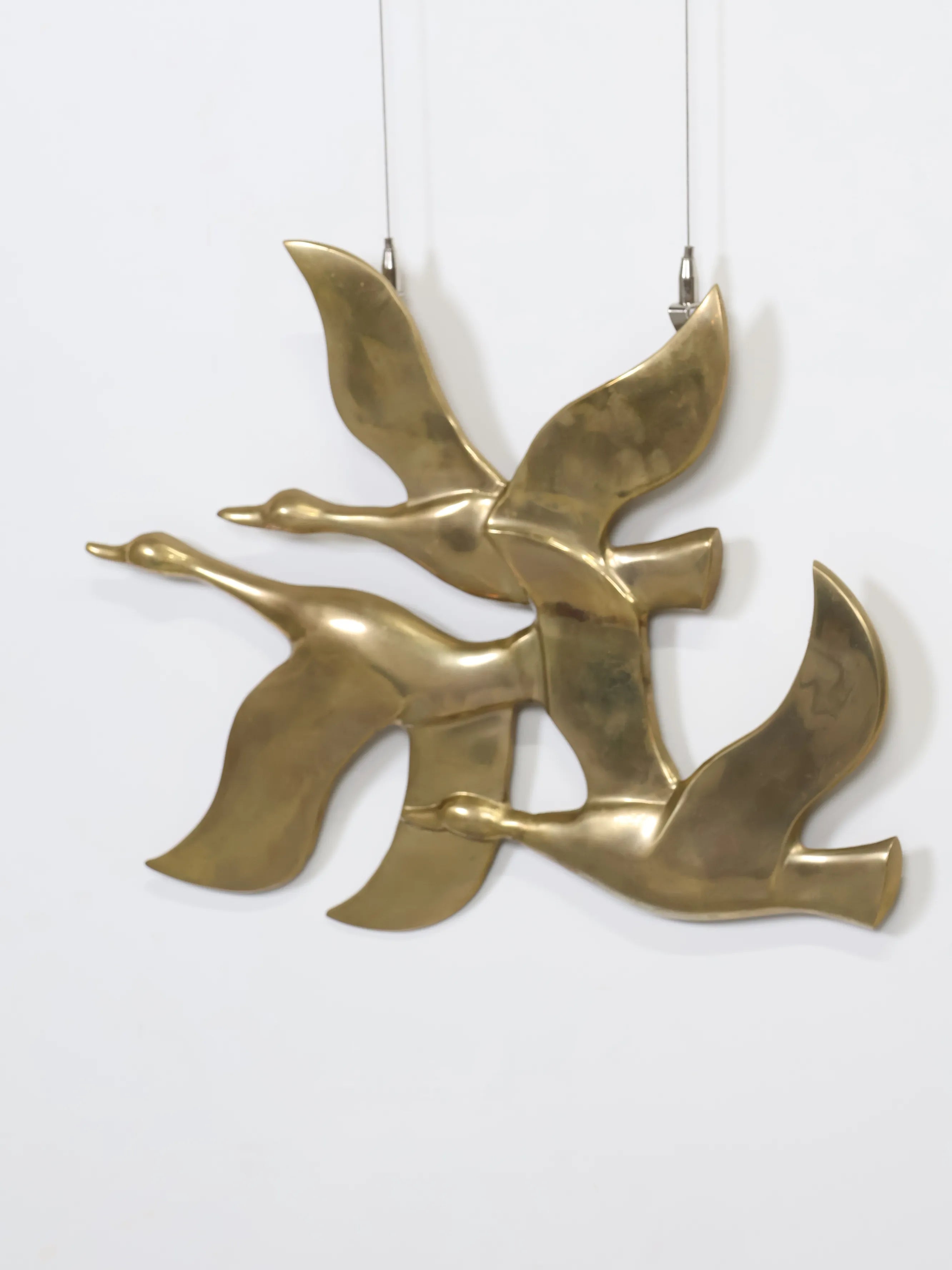 3羽の鳥が連なって飛ぶブラス製のウォールデコは、ミッドセンチュリー期のスカルプチャーを象徴するデザインの一つ。