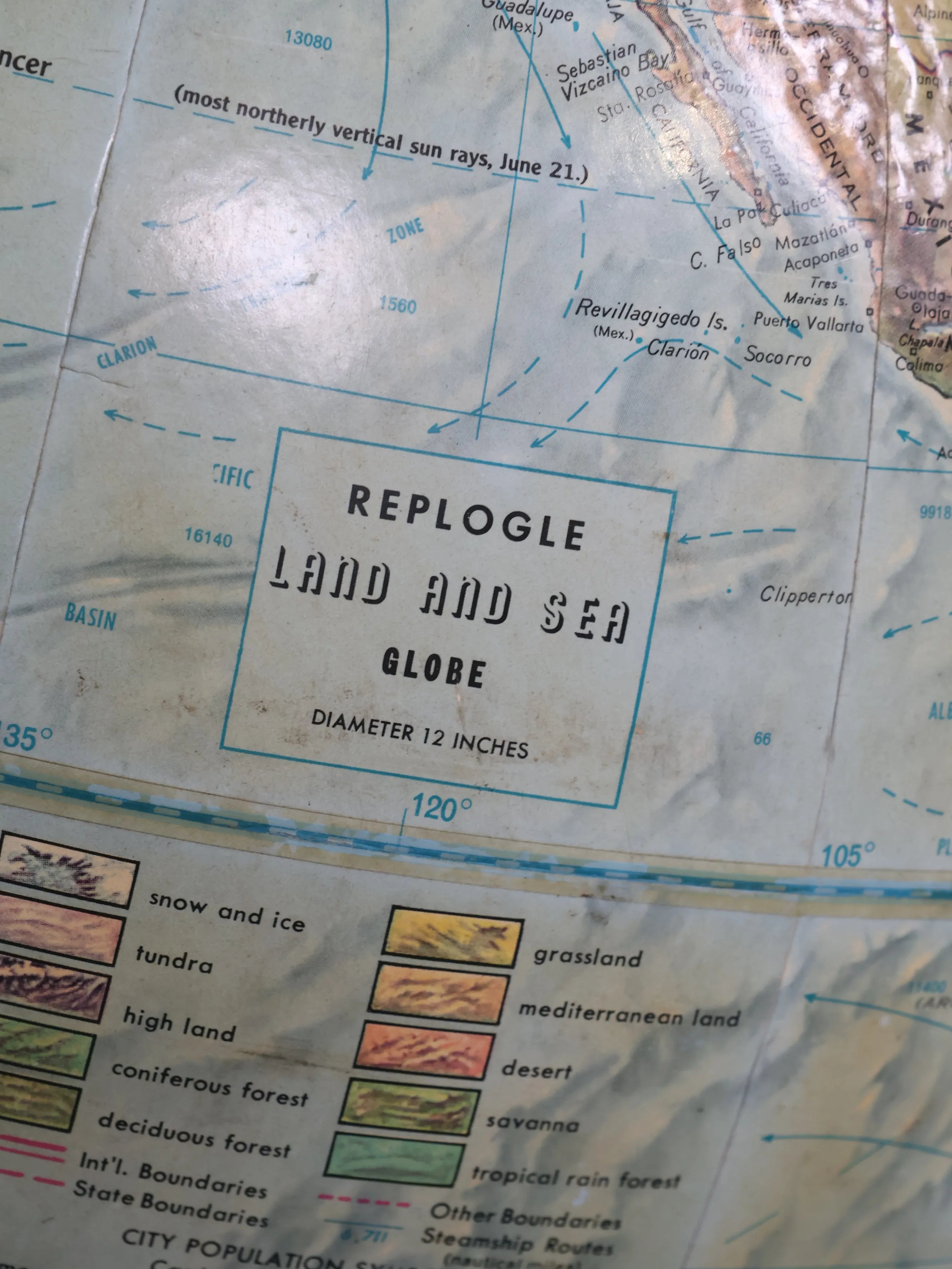 アメリカ・シカゴに拠点を置く老舗地球儀メーカー Replogle(リプルグル)社による、1960年代製のヴィンテージグローブ。