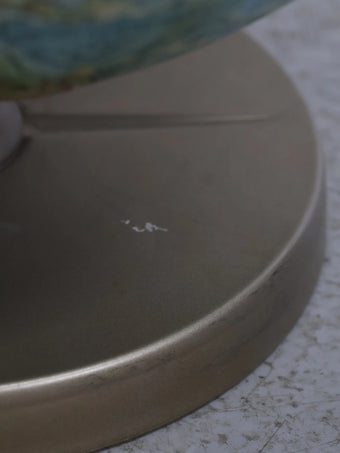 全体に落ち着いたブルーグリーン調の色合いが用いられ、現代の地球儀にはない柔らかく知的な雰囲気を演出。