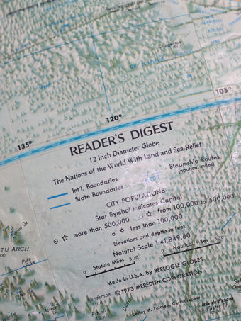 アメリカの老舗地球儀メーカー Replogle(リプルグル)社によって1970年代に製造されたヴィンテージグローブ。