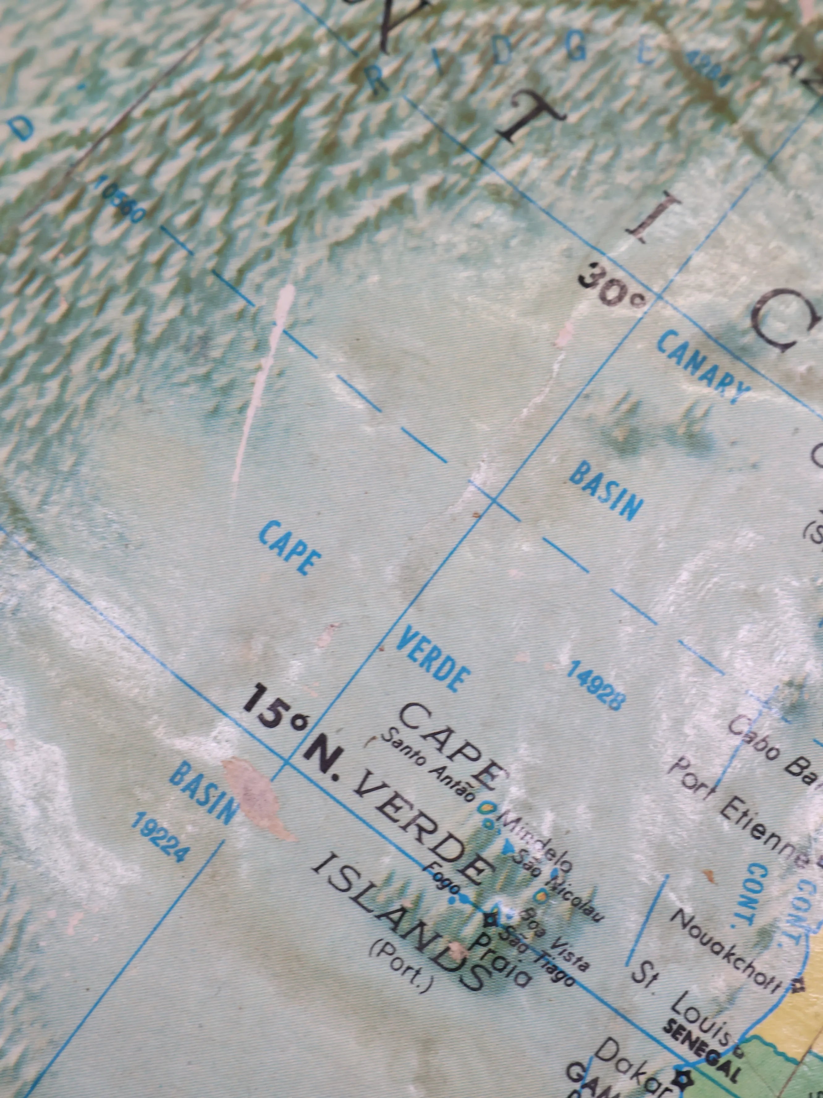 ブルーグリーンを基調とした海の色合いと、やや褪せたマップカラーがヴィンテージならではの落ち着いた印象を演出。