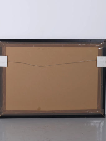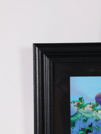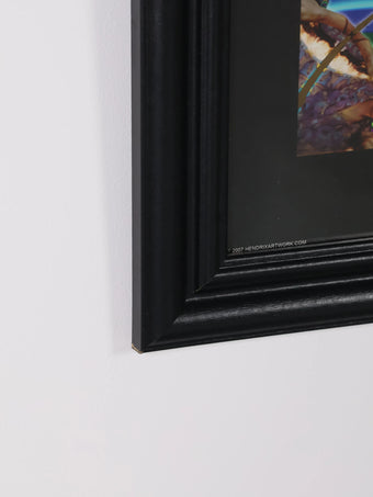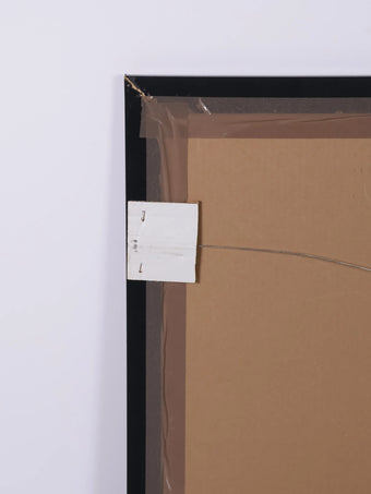 ウッドフレームで額装されており、壁に穴を開ける事が難しい場合は、サイドボードやデスクの上に立てかけ飾ることも可能です。