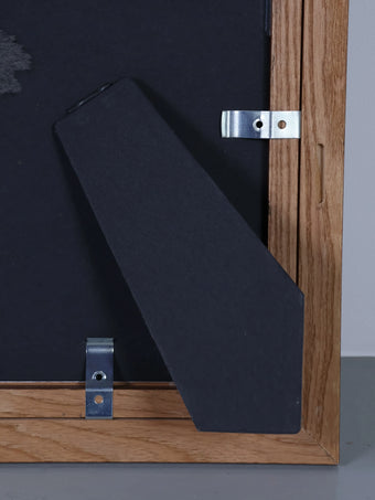 ウッドフレームで額装されており、壁掛けとしてのご使用はもちろん、サイドボードやテーブルの上に立てかけてお使い頂けます。