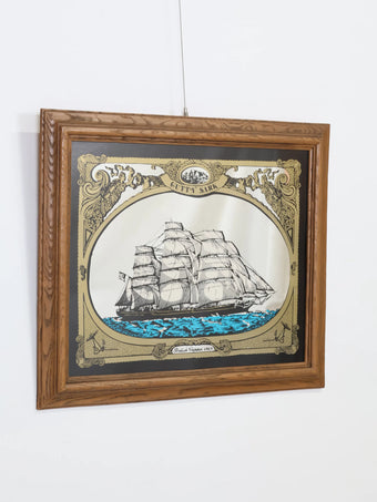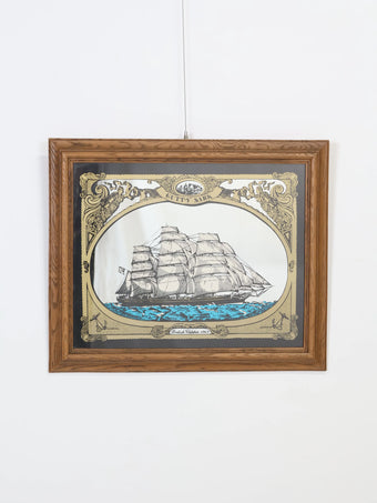一般的なパブミラーとは違う、ダイナミックな船を描いたデザインがオリジナリティ溢れる逸品。
