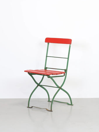オランダより買い付けました1960年代-1970年代のグリーンメタルフレームレッドペイントウッドフォルディングです。