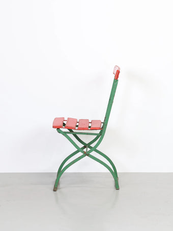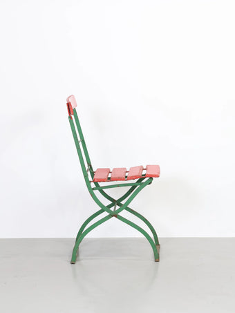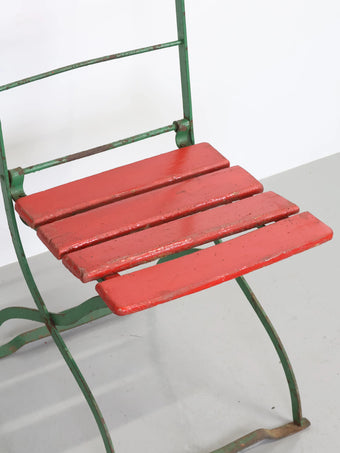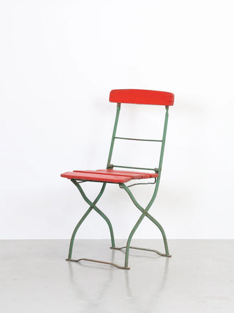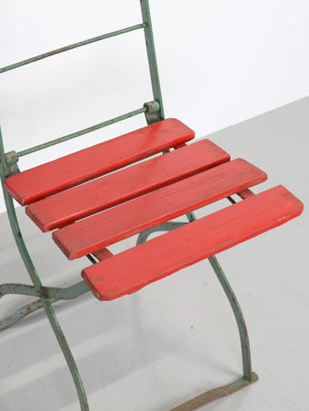 - 品名:ヴィンテージ グリーンメタルフレーム レッドペイント ウッド フォルディング チェア