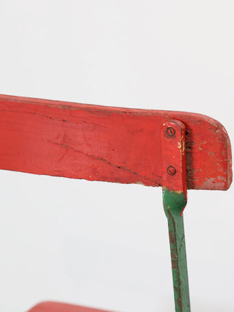 1960 - 70年代 ヴィンテージ グリーンメタルフレーム レッドペイント ウッド フォルディング チェア