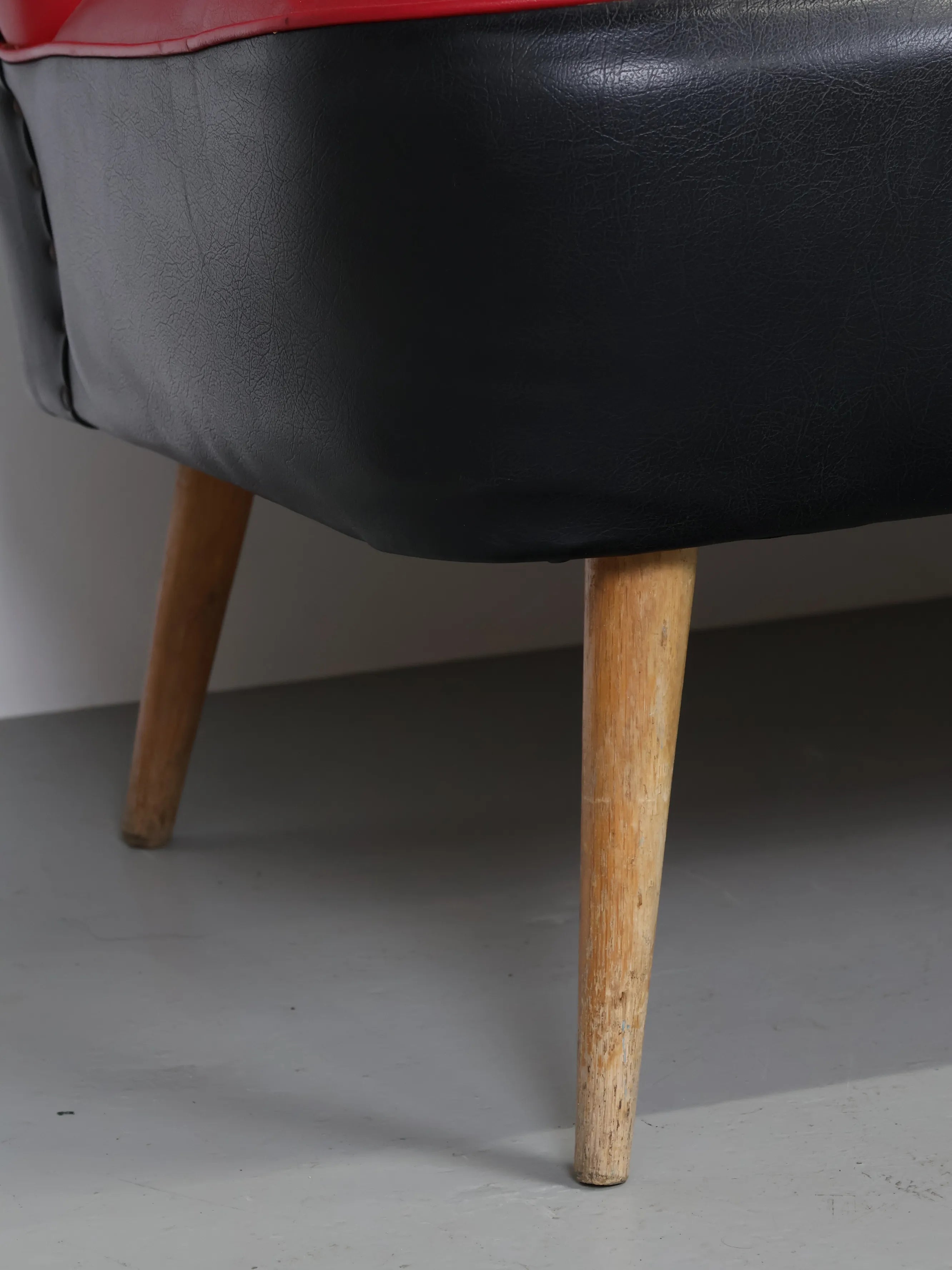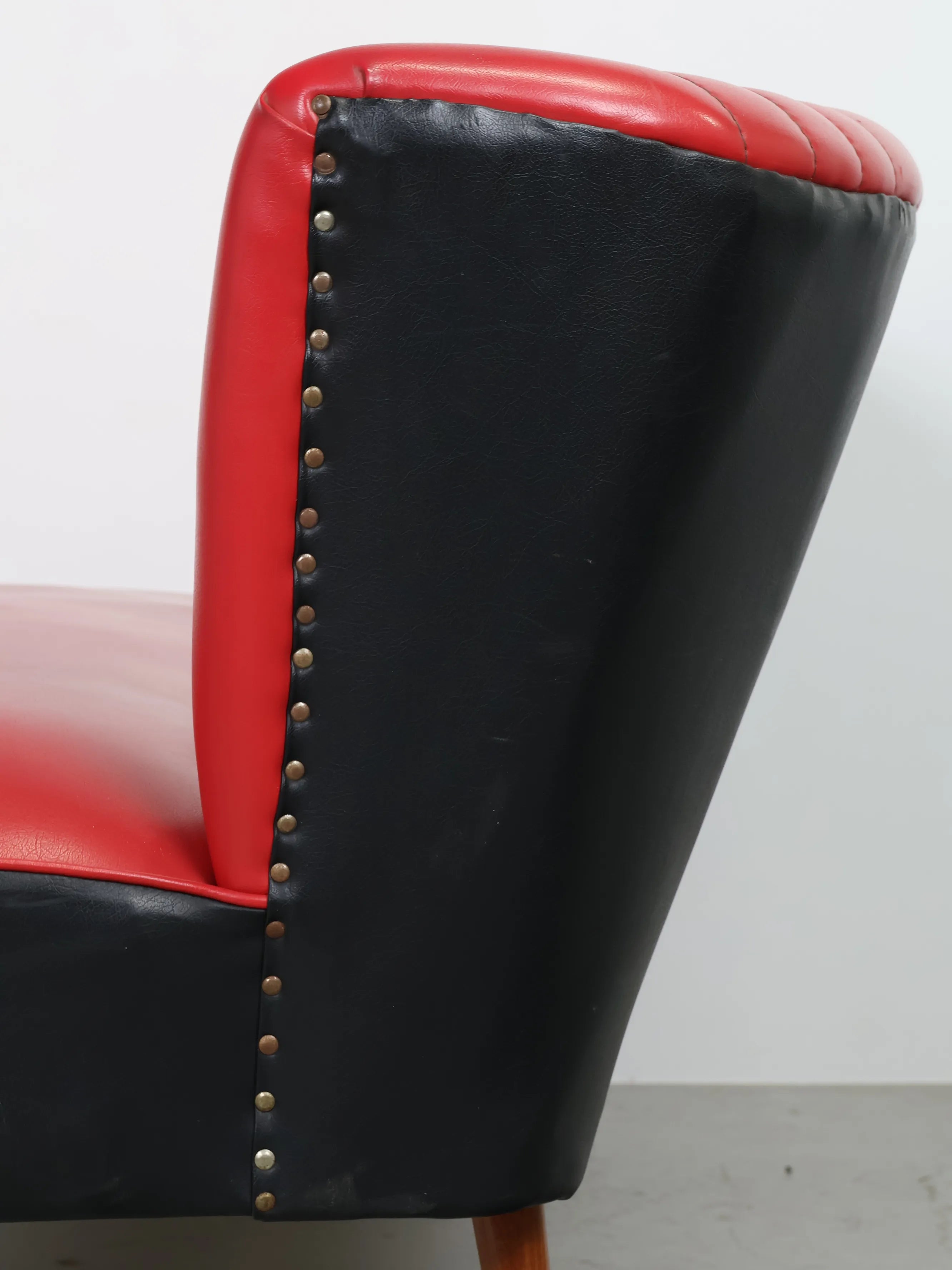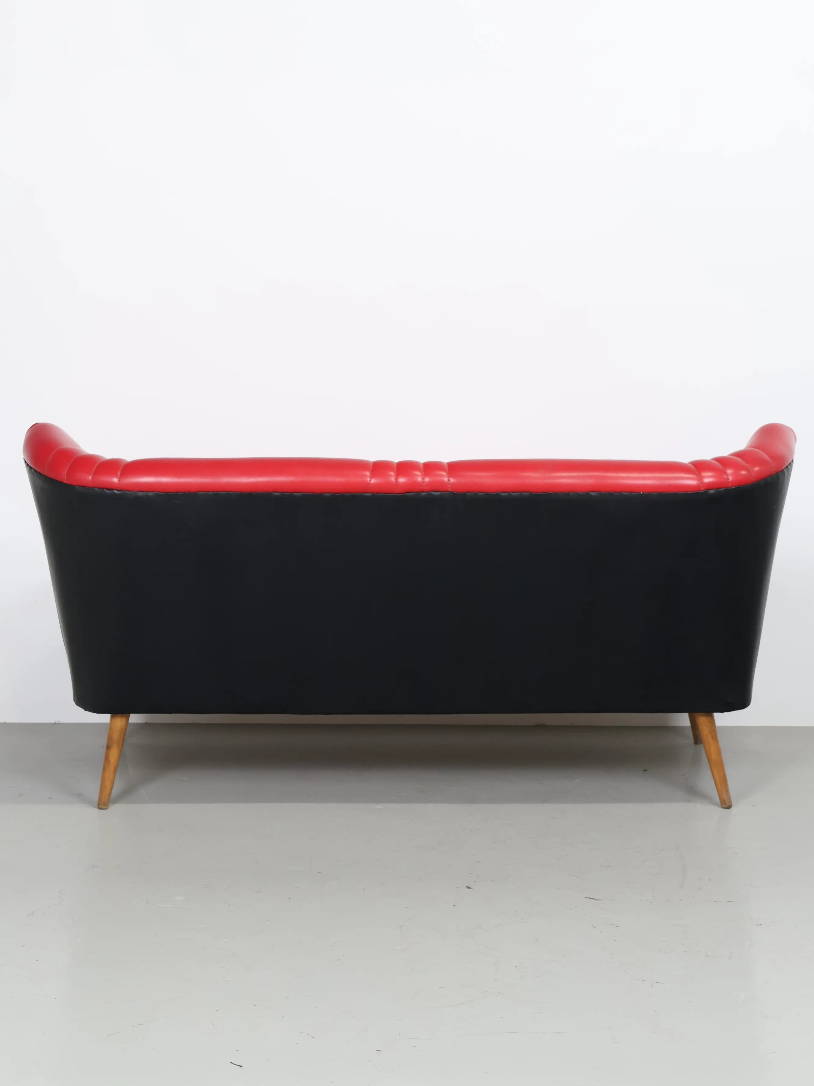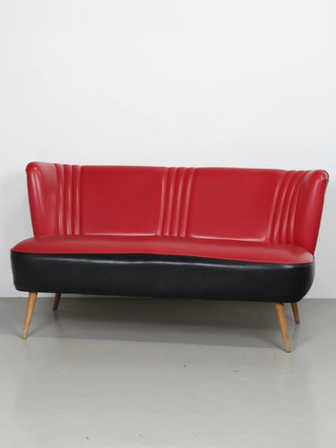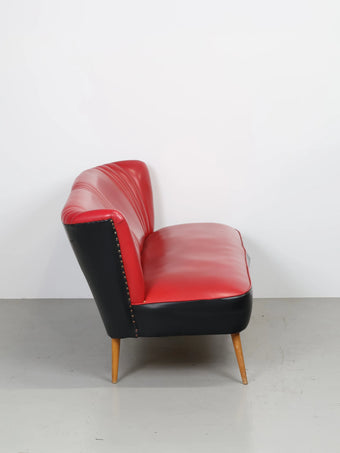 ハンガリーより買い付けました1970年代のレッドビニールレザー2シーターソファです。