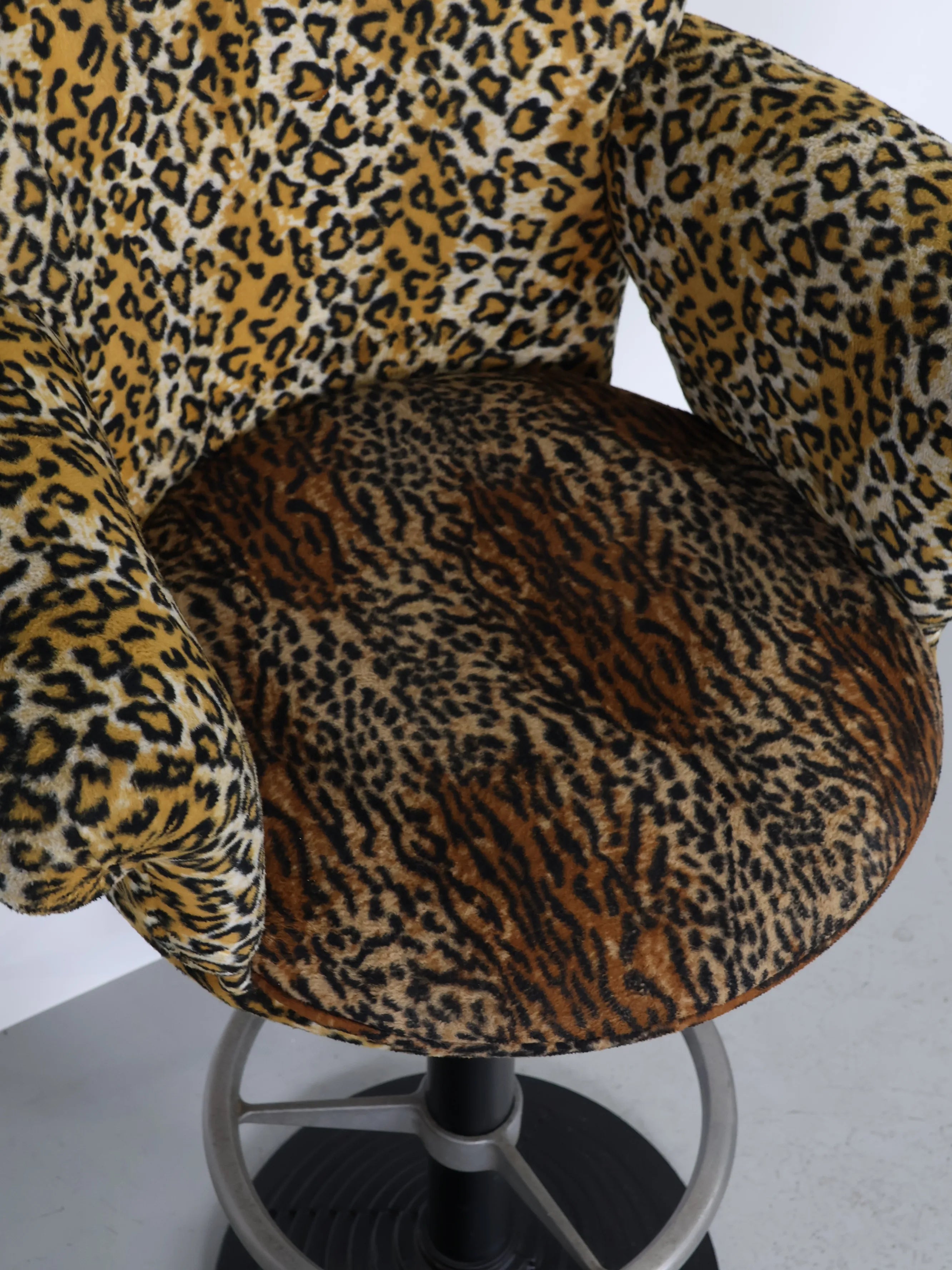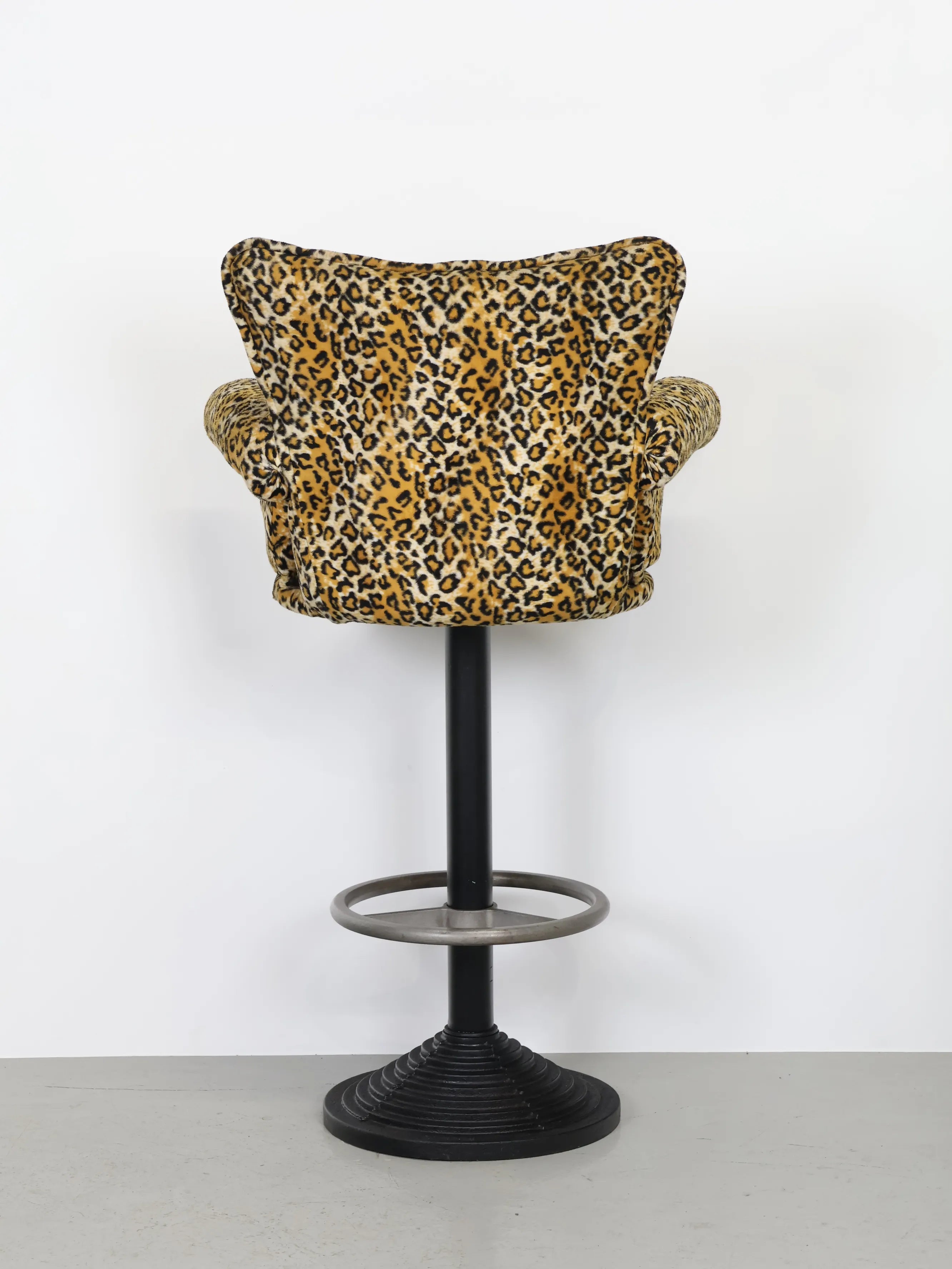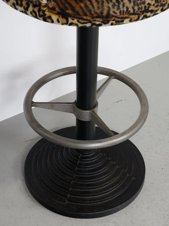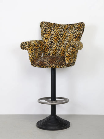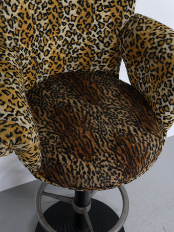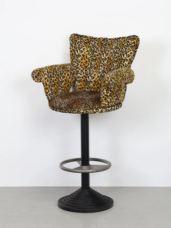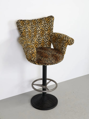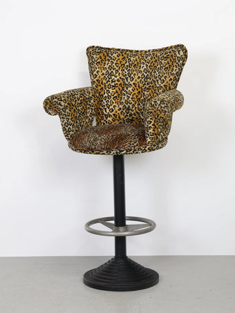 微起毛したレオパード型のファブリックがアクセントになったバーチェア。