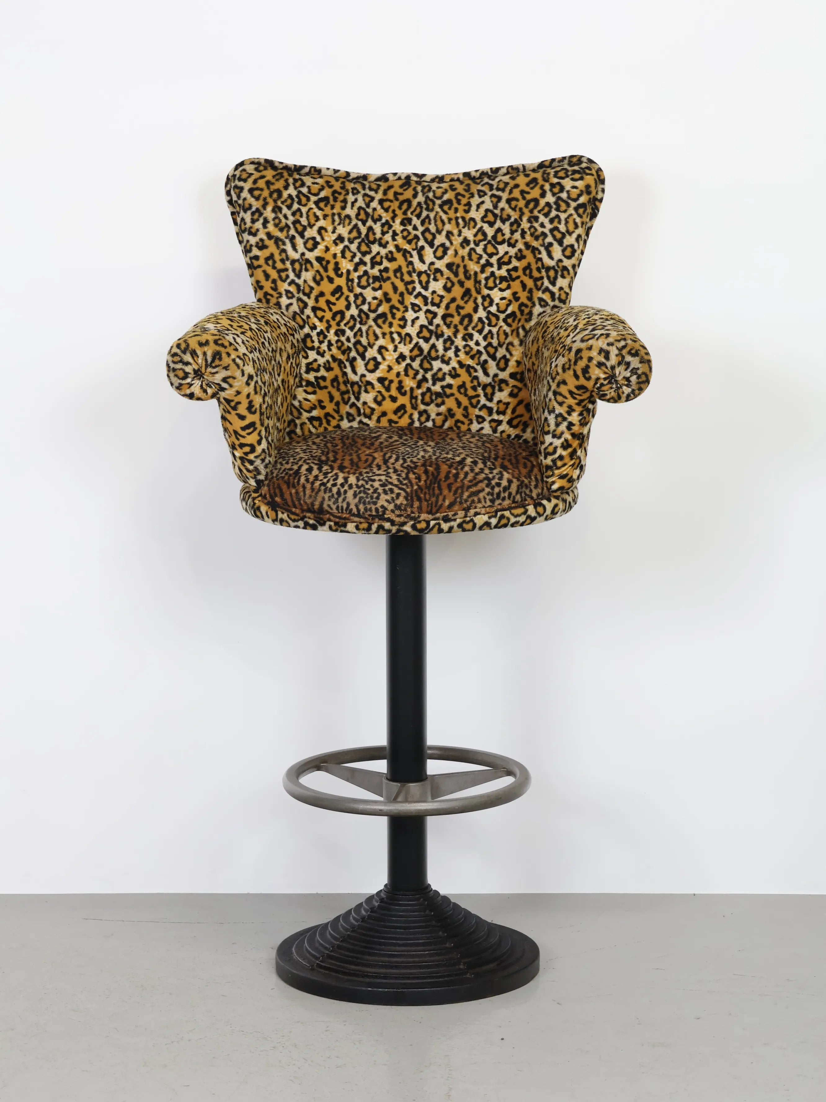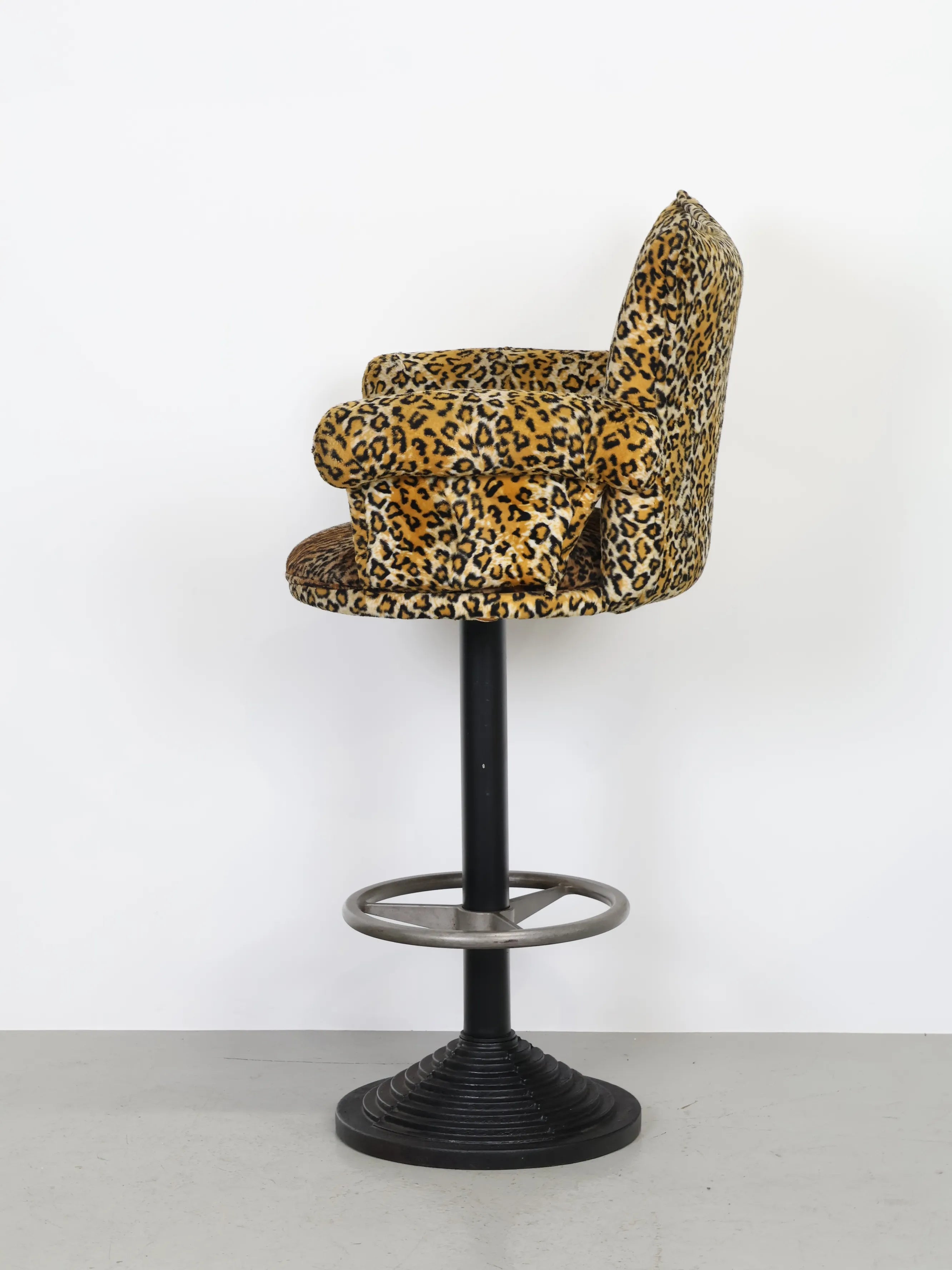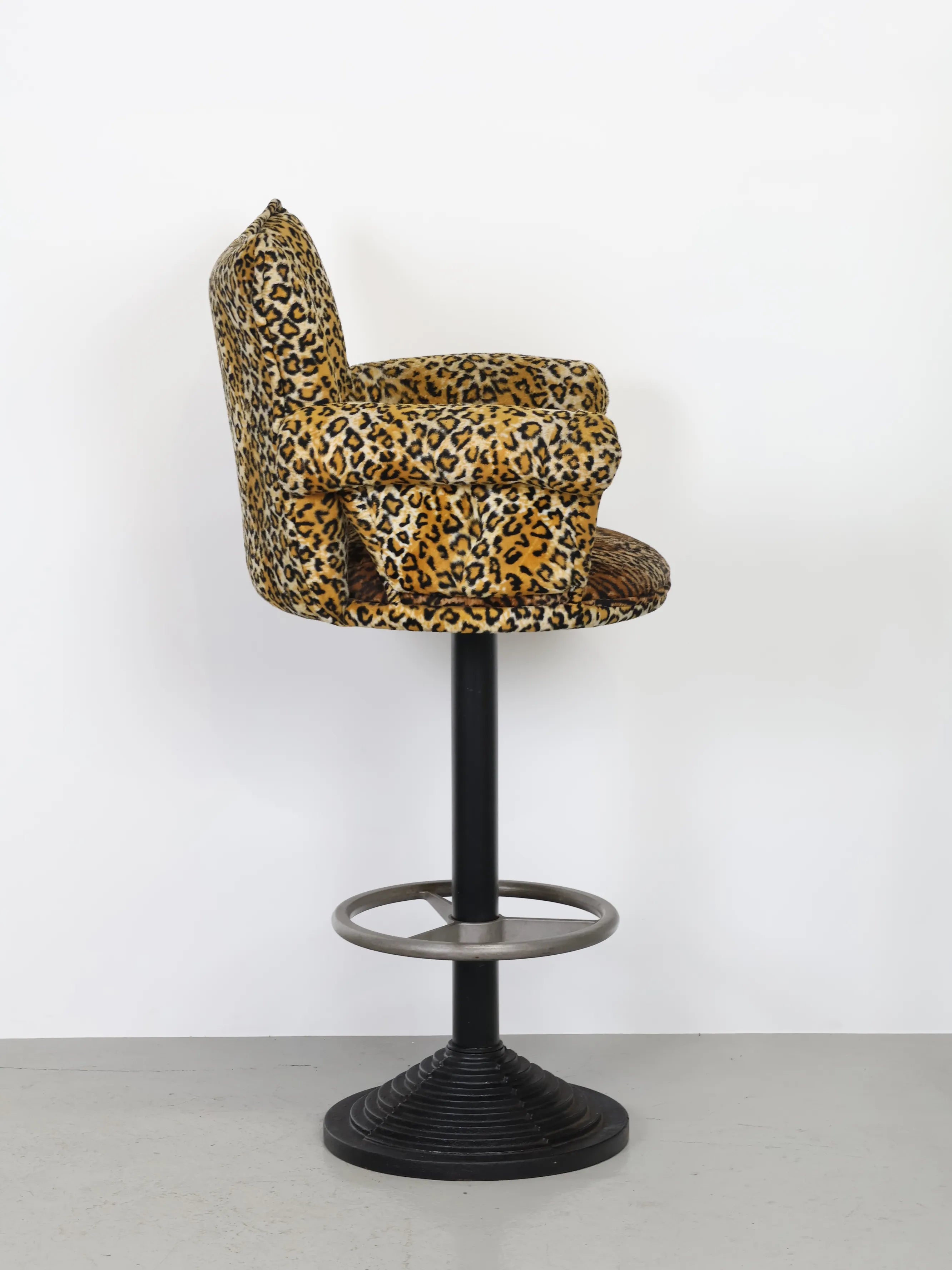 微起毛したレオパード型のファブリックがアクセントになったバーチェア。