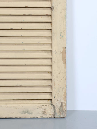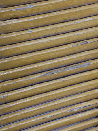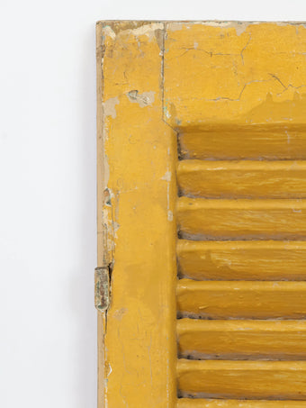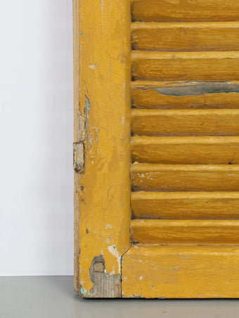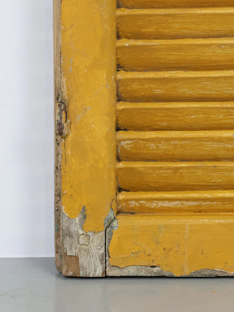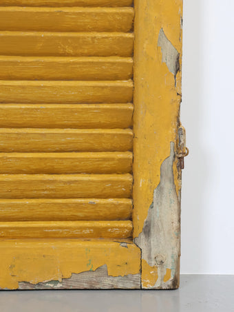 ビビッドなイエローにペイントされ、経年変化によるヴィンテージならではの味わい深い表情が全面に出た窓用のシャッターです。