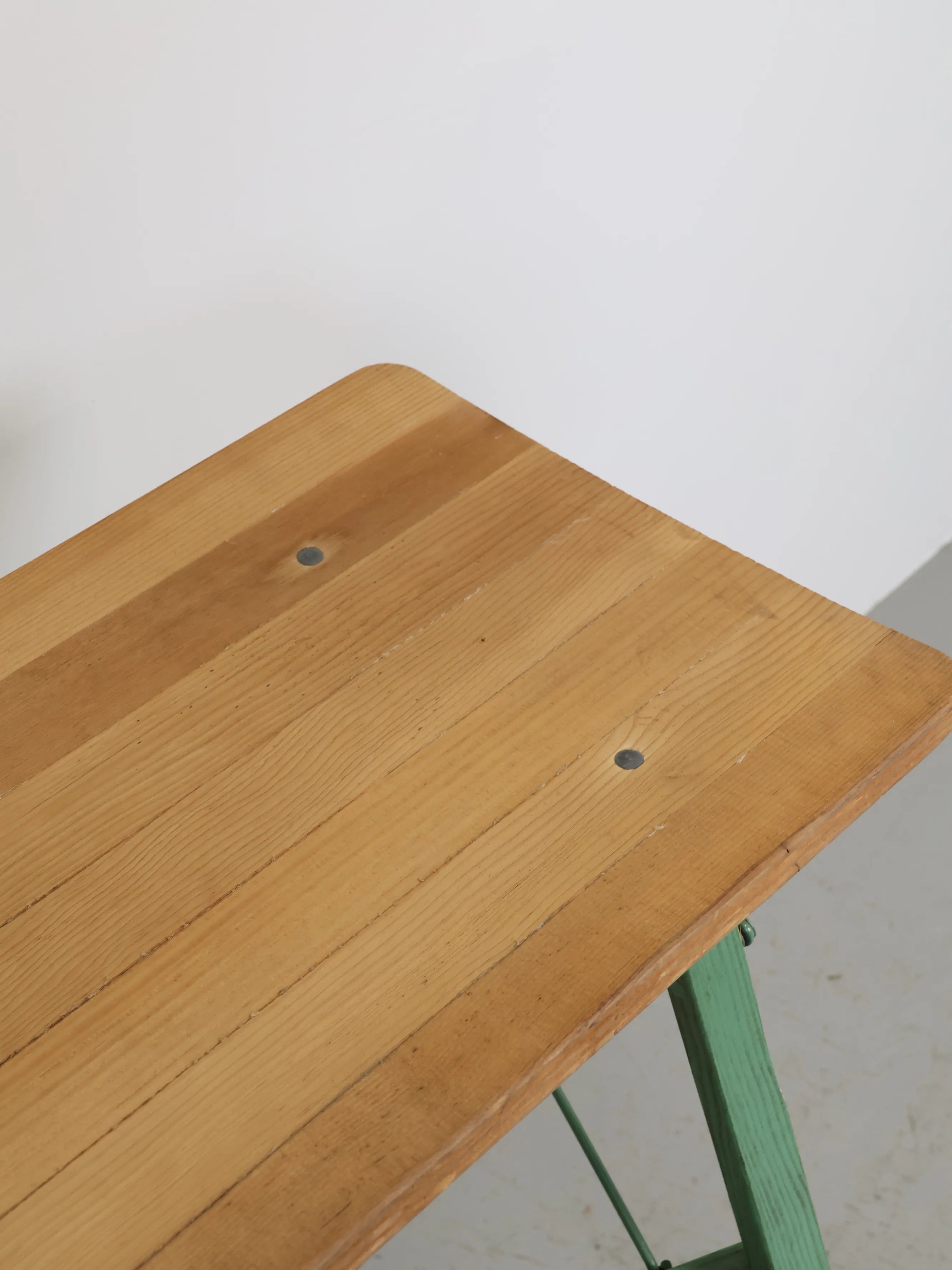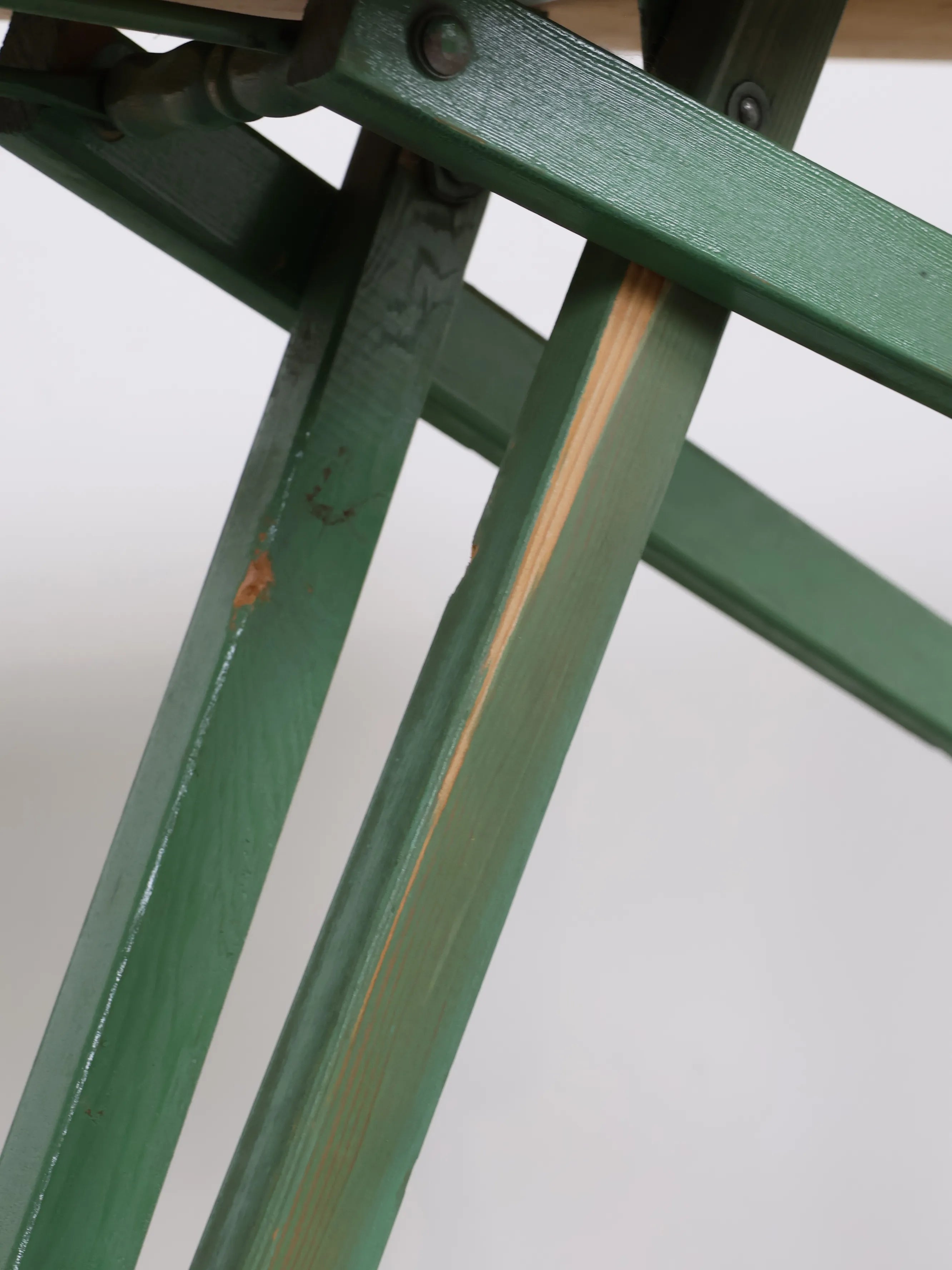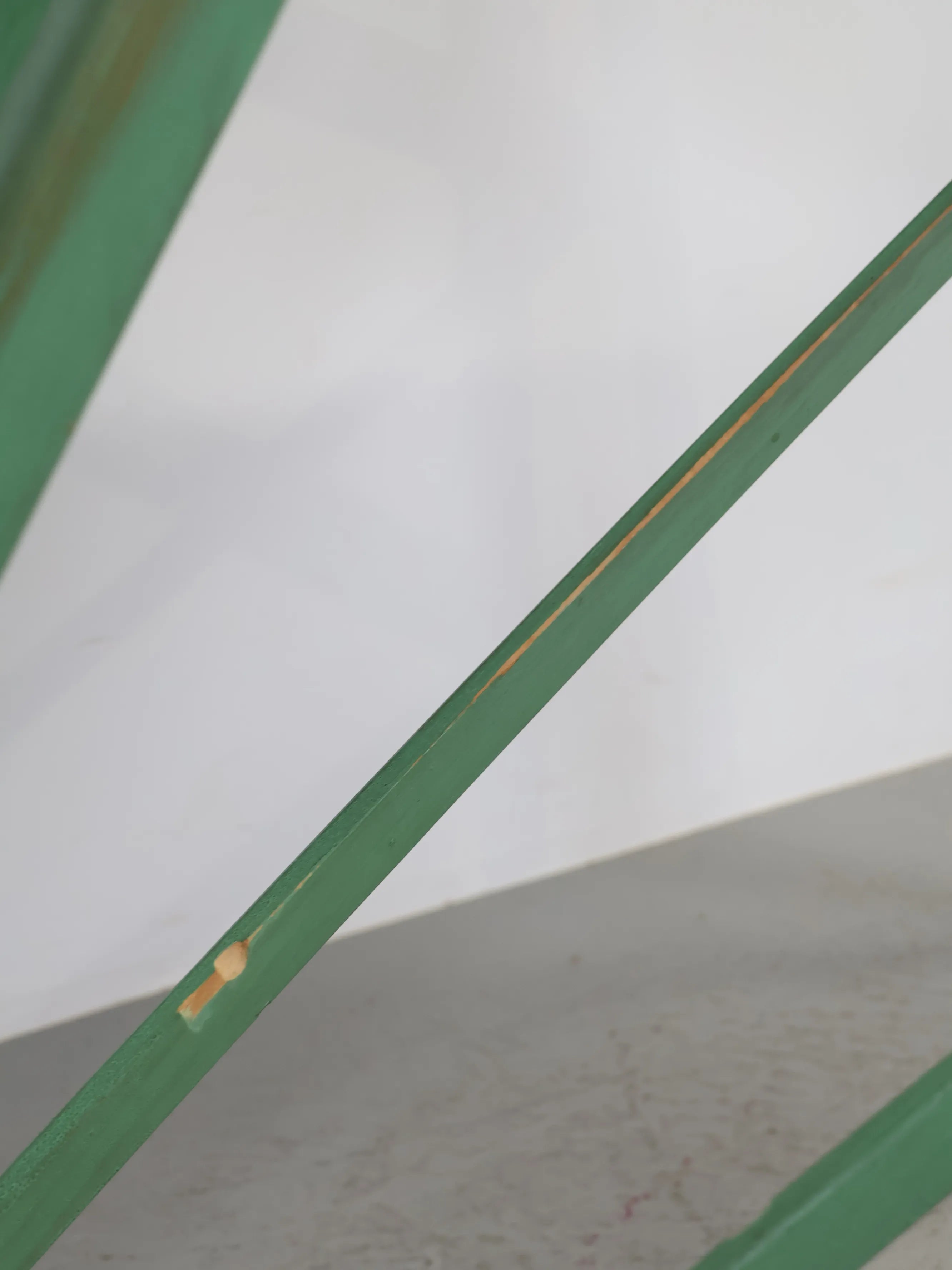 グリーンにペイントされたベースが天板のナチュラルなカラーと相性がよく柔らかい印象を演出しています。