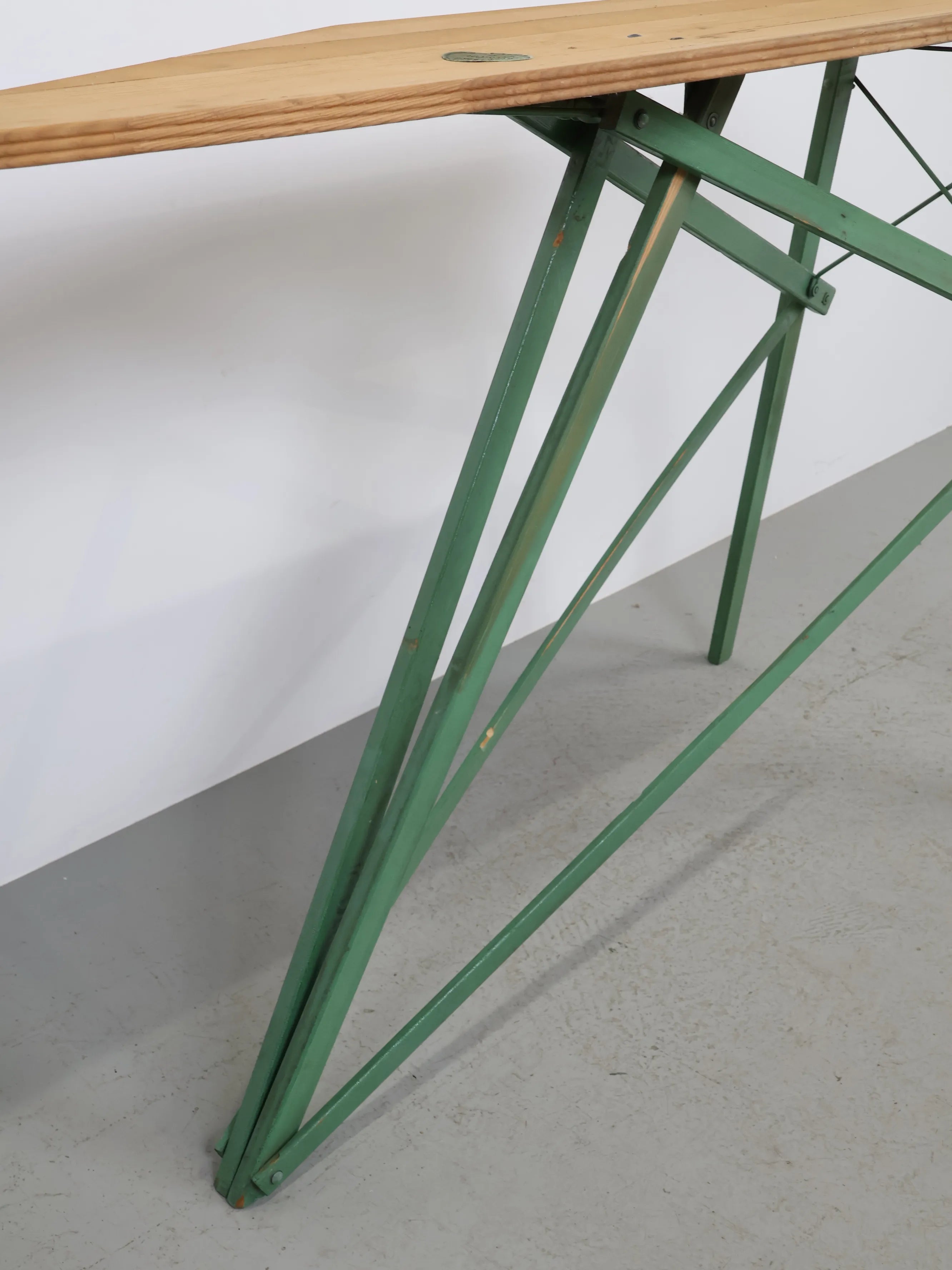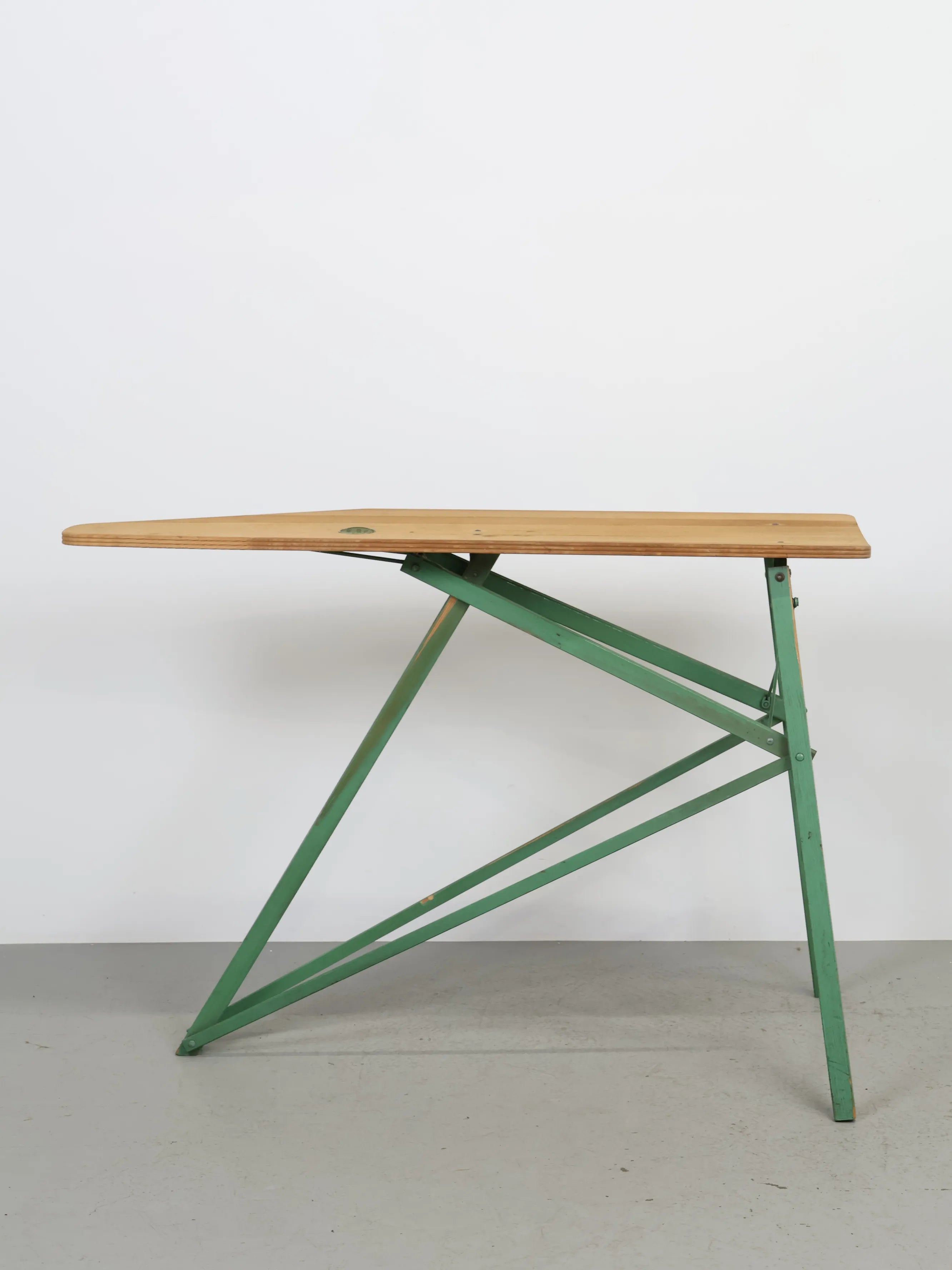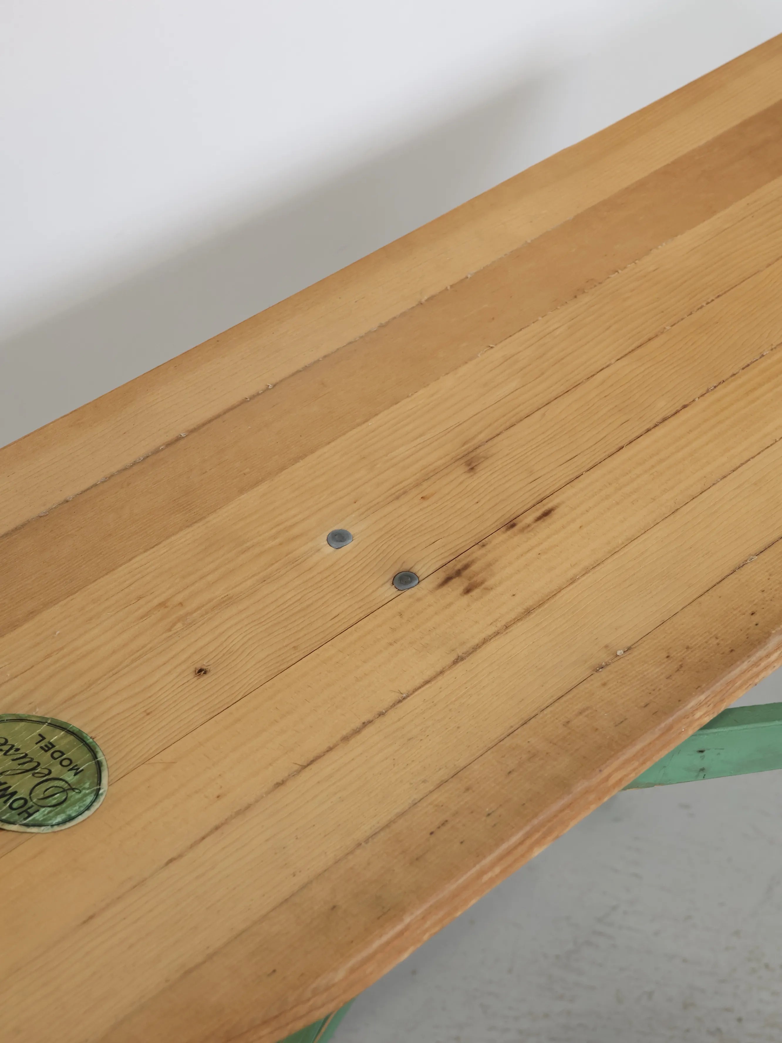 グリーンにペイントされたベースが天板のナチュラルなカラーと相性がよく柔らかい印象を演出しています。