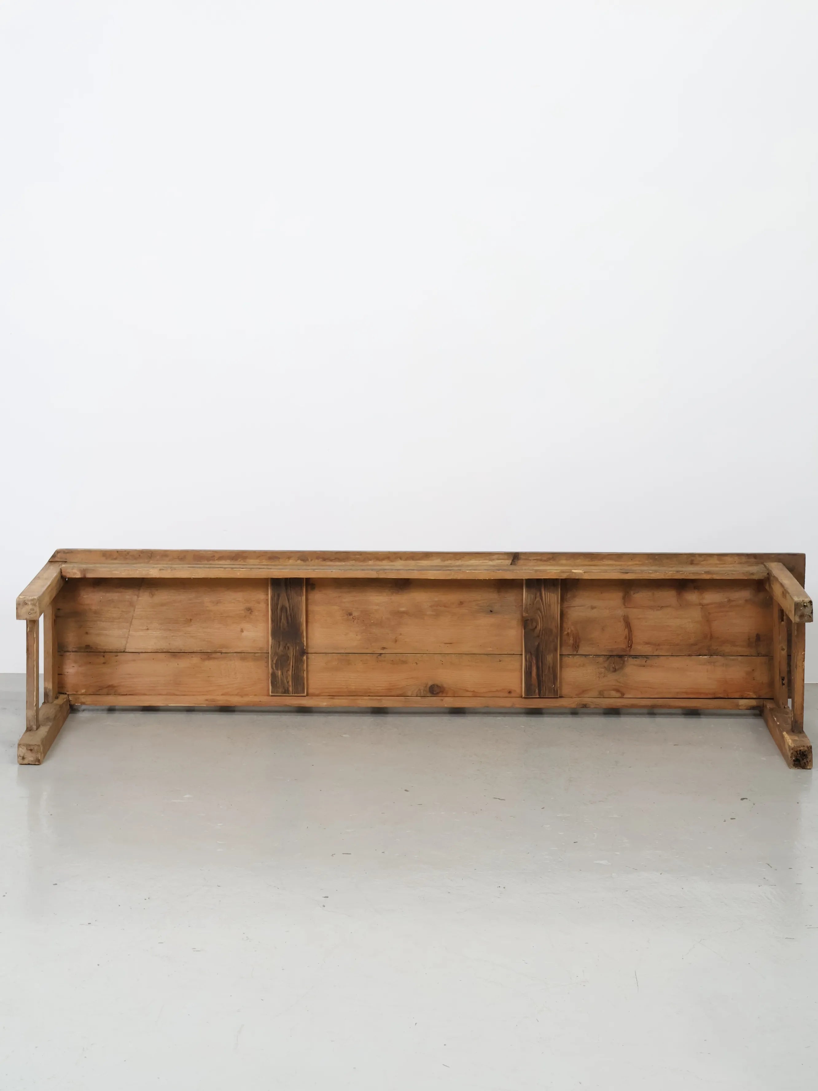 経年による擦れや色ムラ、小傷など、それら一つひとつがこのベンチの個性となり、現行品にはない奥行きのある表情を生み出しています。