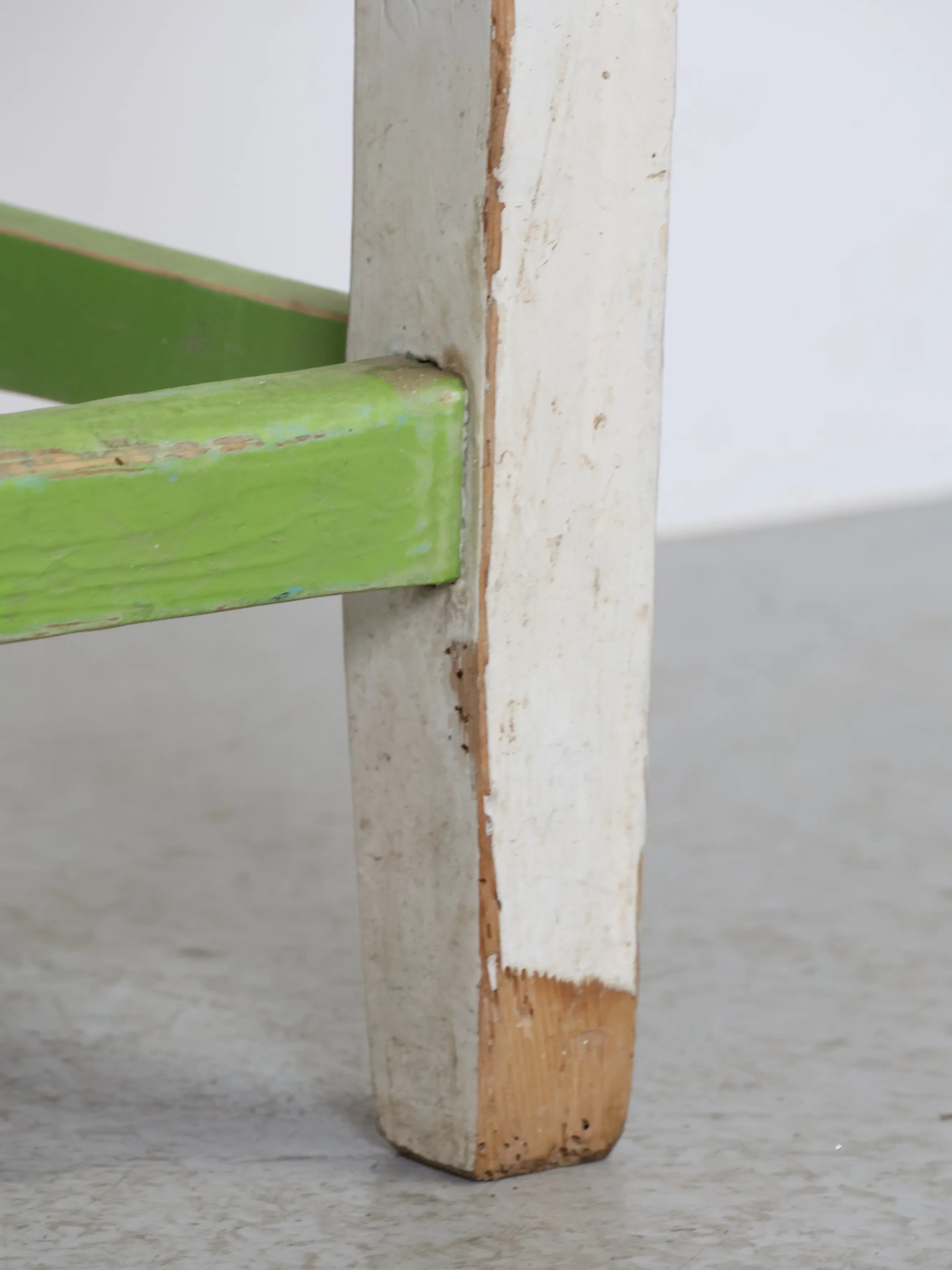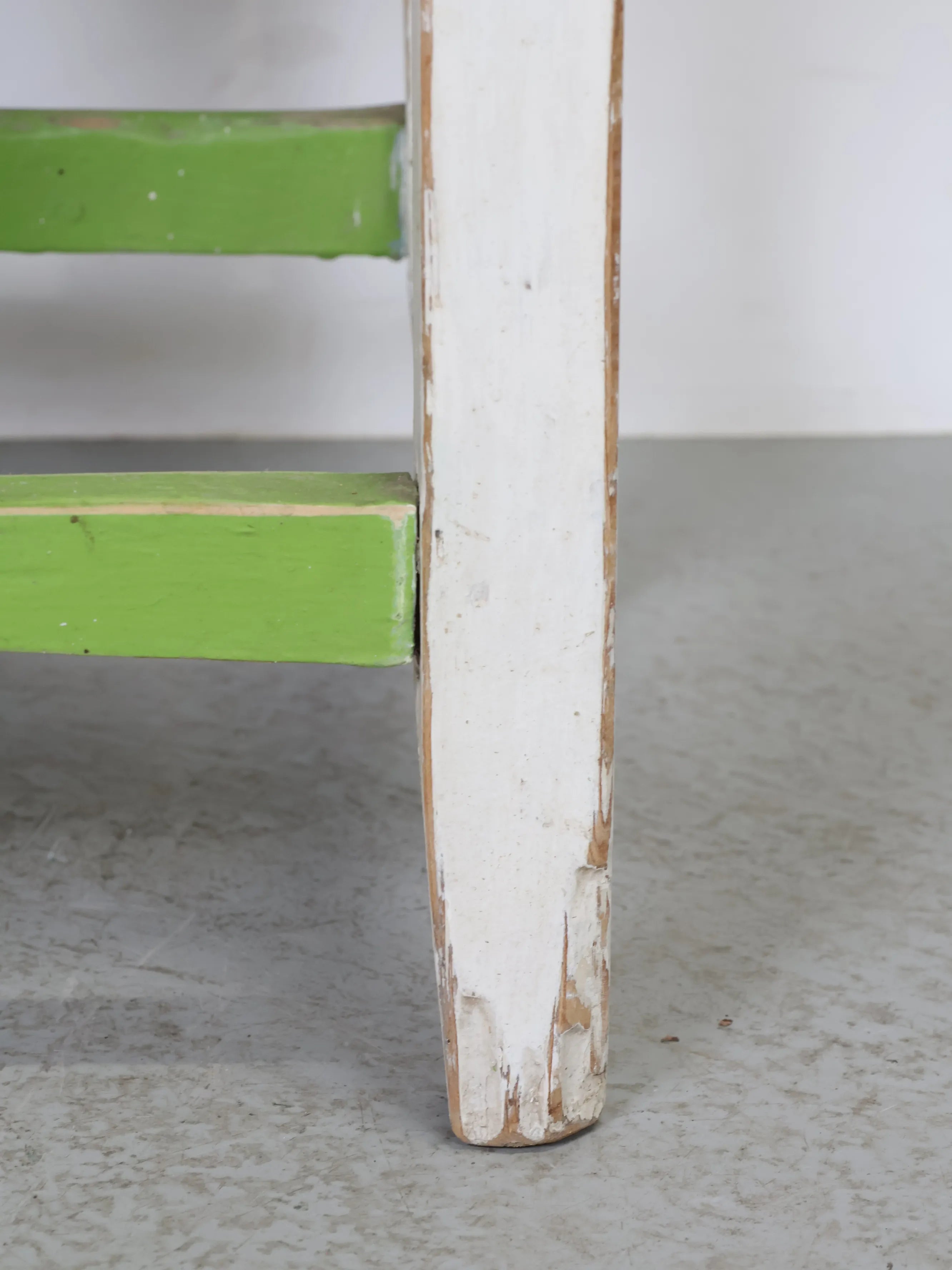 脚部はホワイトペイント、貫にはやわらかなグリーンが施されており、シャビーシックな雰囲気が空間にアクセントを加えます。