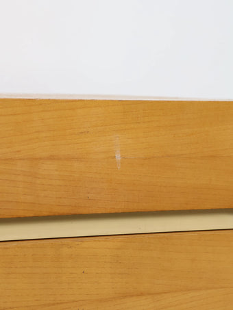 直線的でシンプルなフォルムに、引き出し前面の緩やかなカーブラインが程よいアクセントとなり、ミッドセンチュリースタイルのお部屋に自然と溶け込みます。