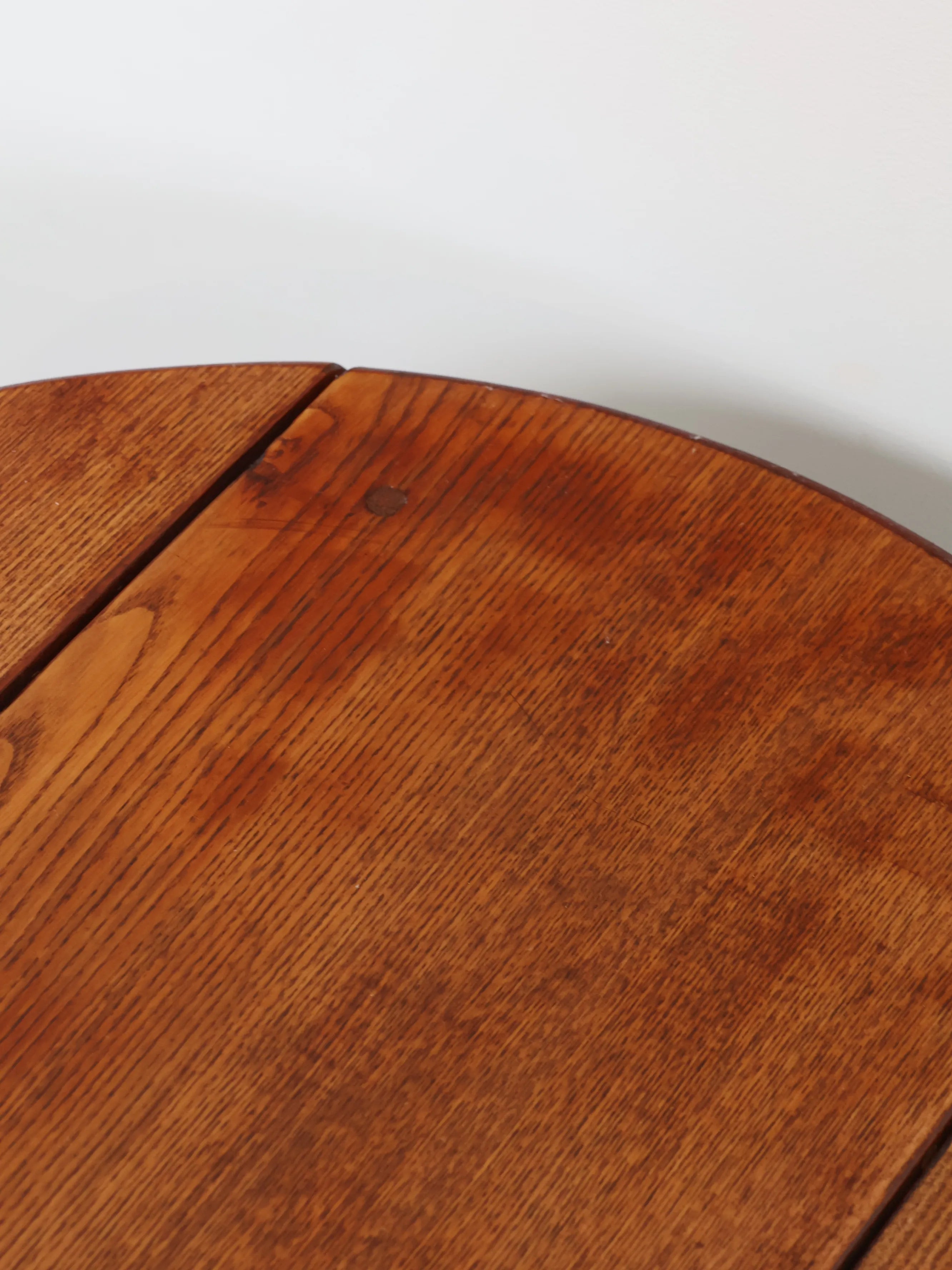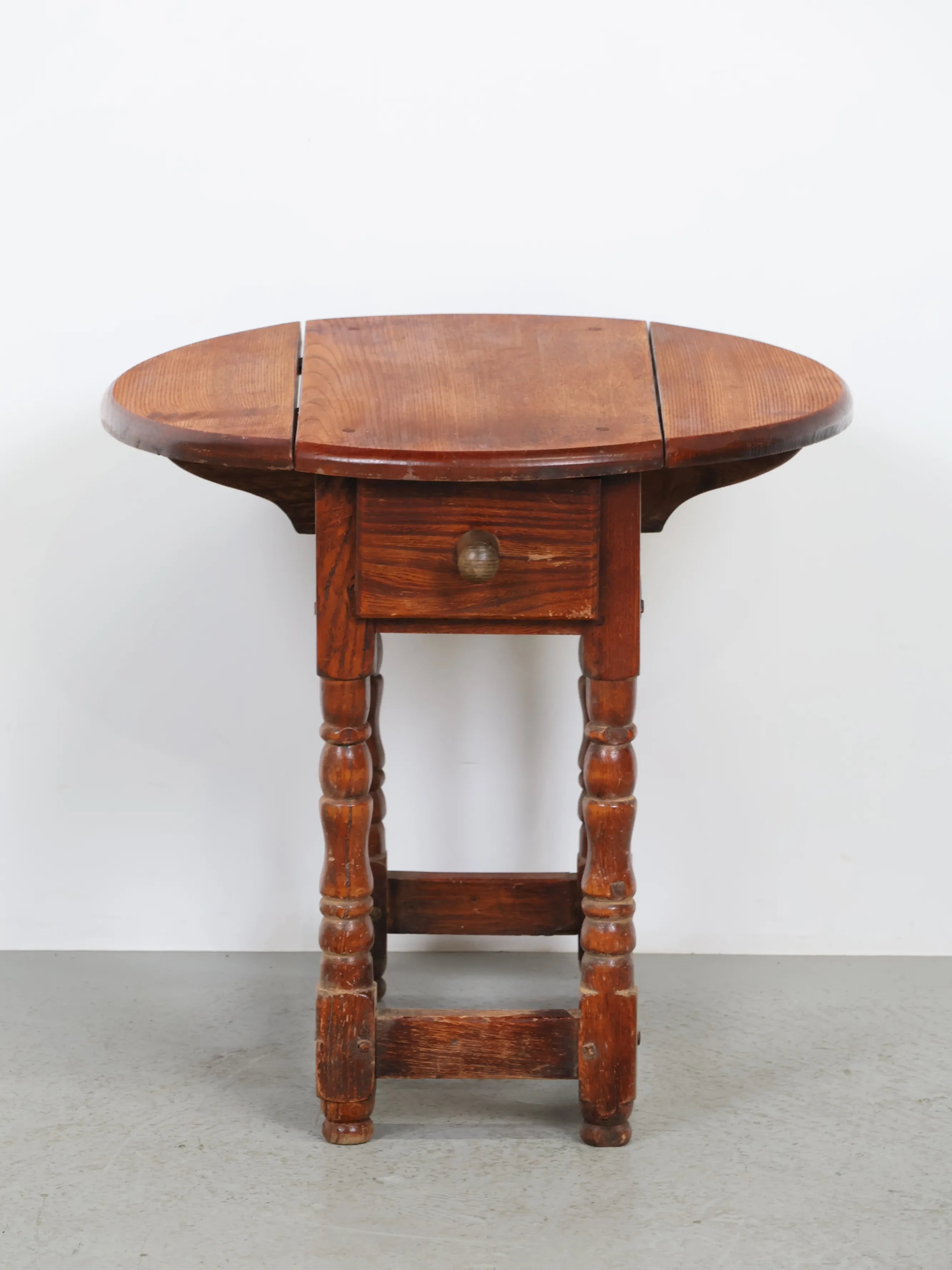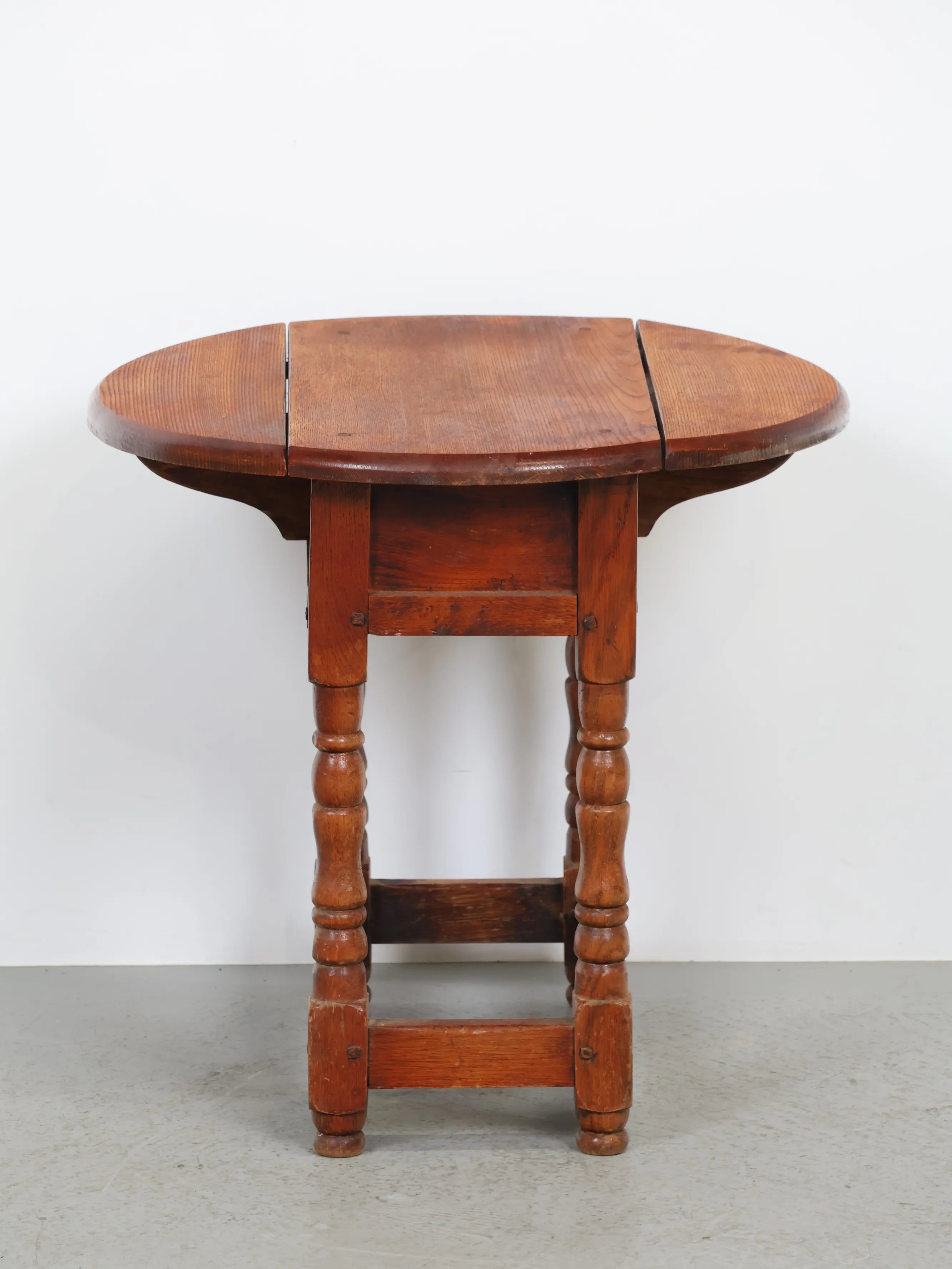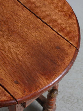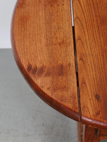 天板は丸みを帯びたオーバル型で、両サイドには可動式のバタフライリーフ(拡張板)が備わっています。