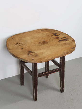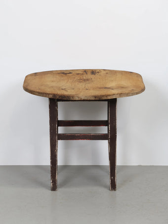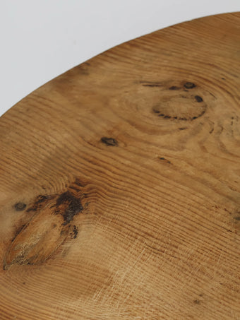 元々はスツールとして使われていたベースに、ナチュラルなウッドの丸型天板を付けたデザイン。
