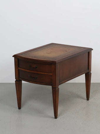 1960 - 70年代 Hammary社製 ヴィンテージ ウッド レザートップ ドロアー付き エンドテーブル サイドテーブル