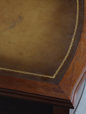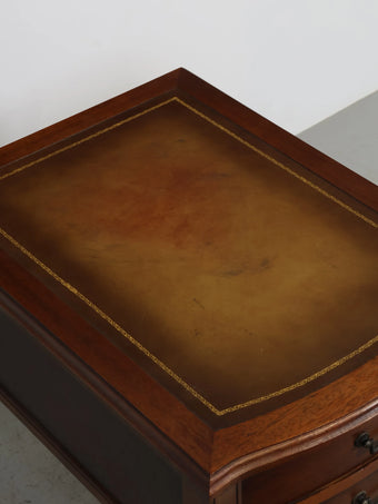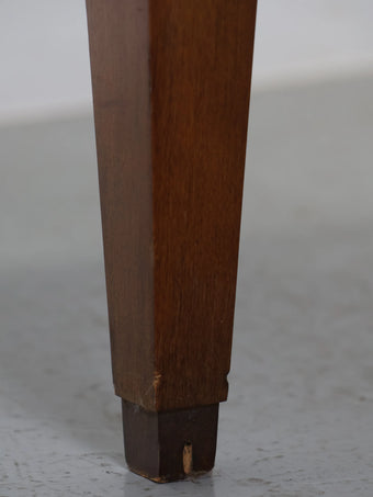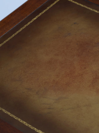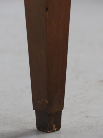 年代を感じさせる味わい深いウッドの表情と天板のレザーの経年変化が雰囲気のある逸品。