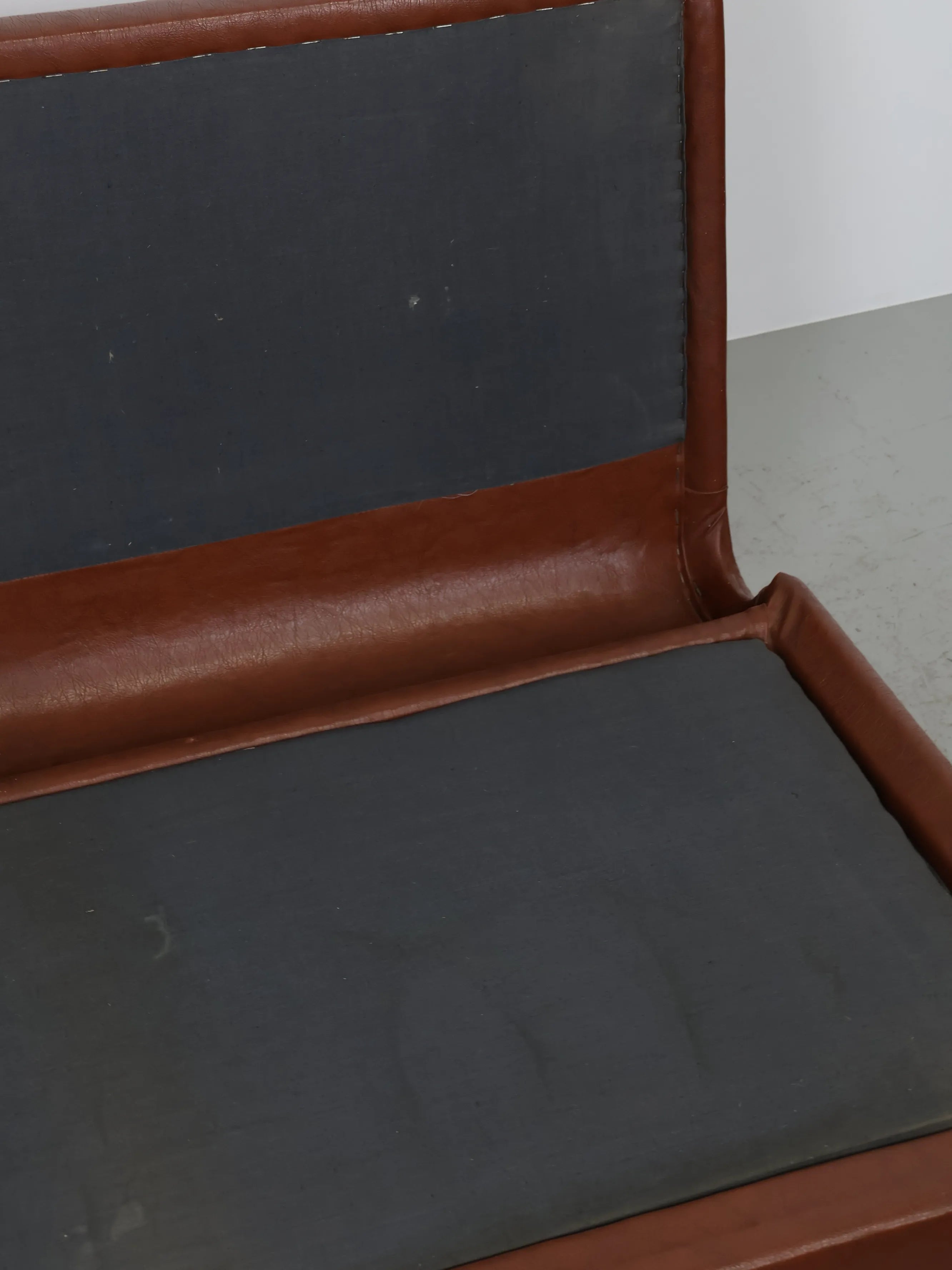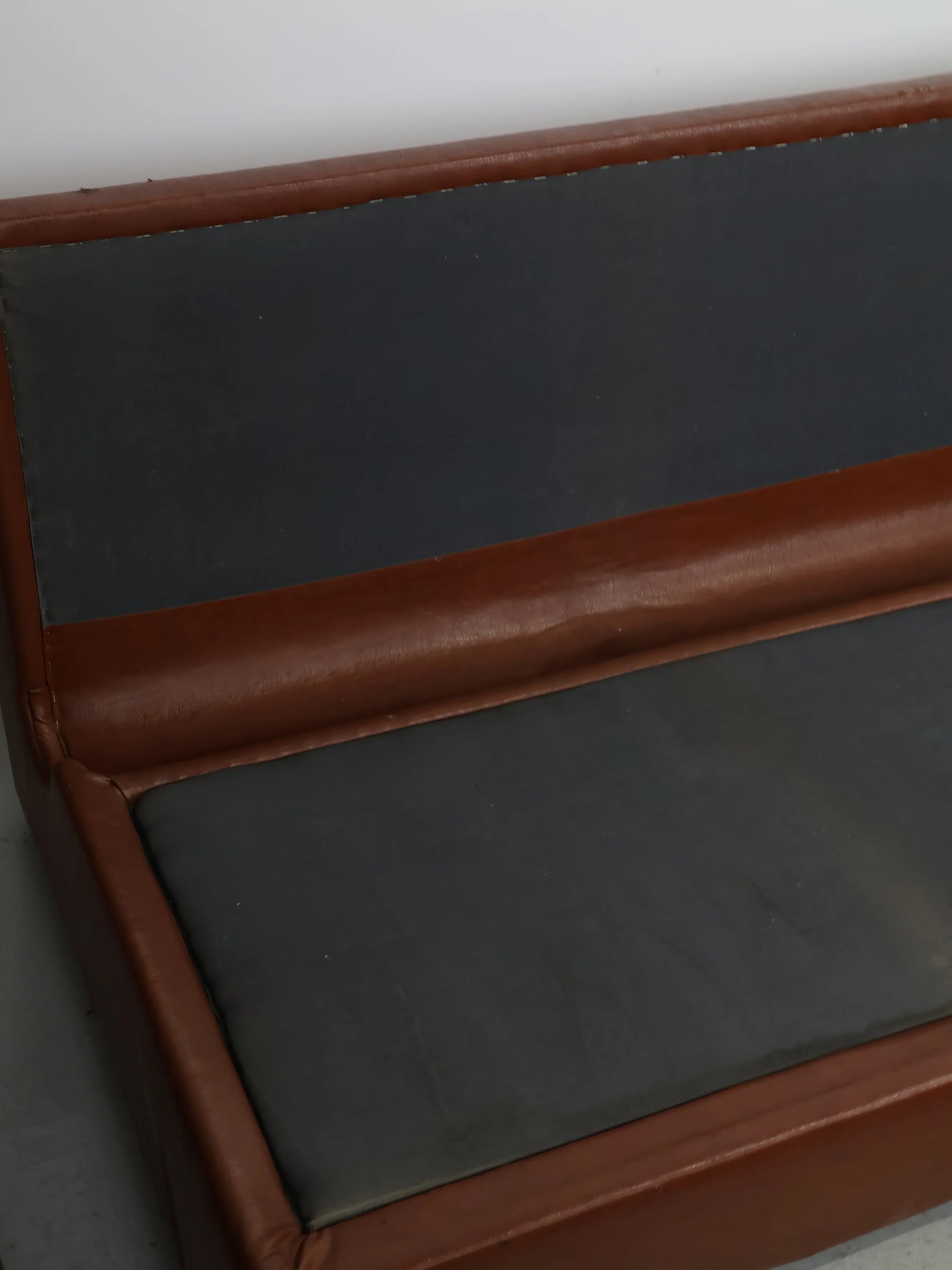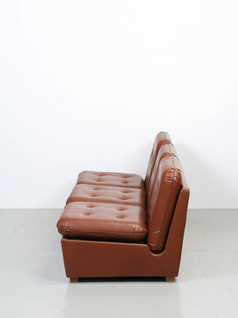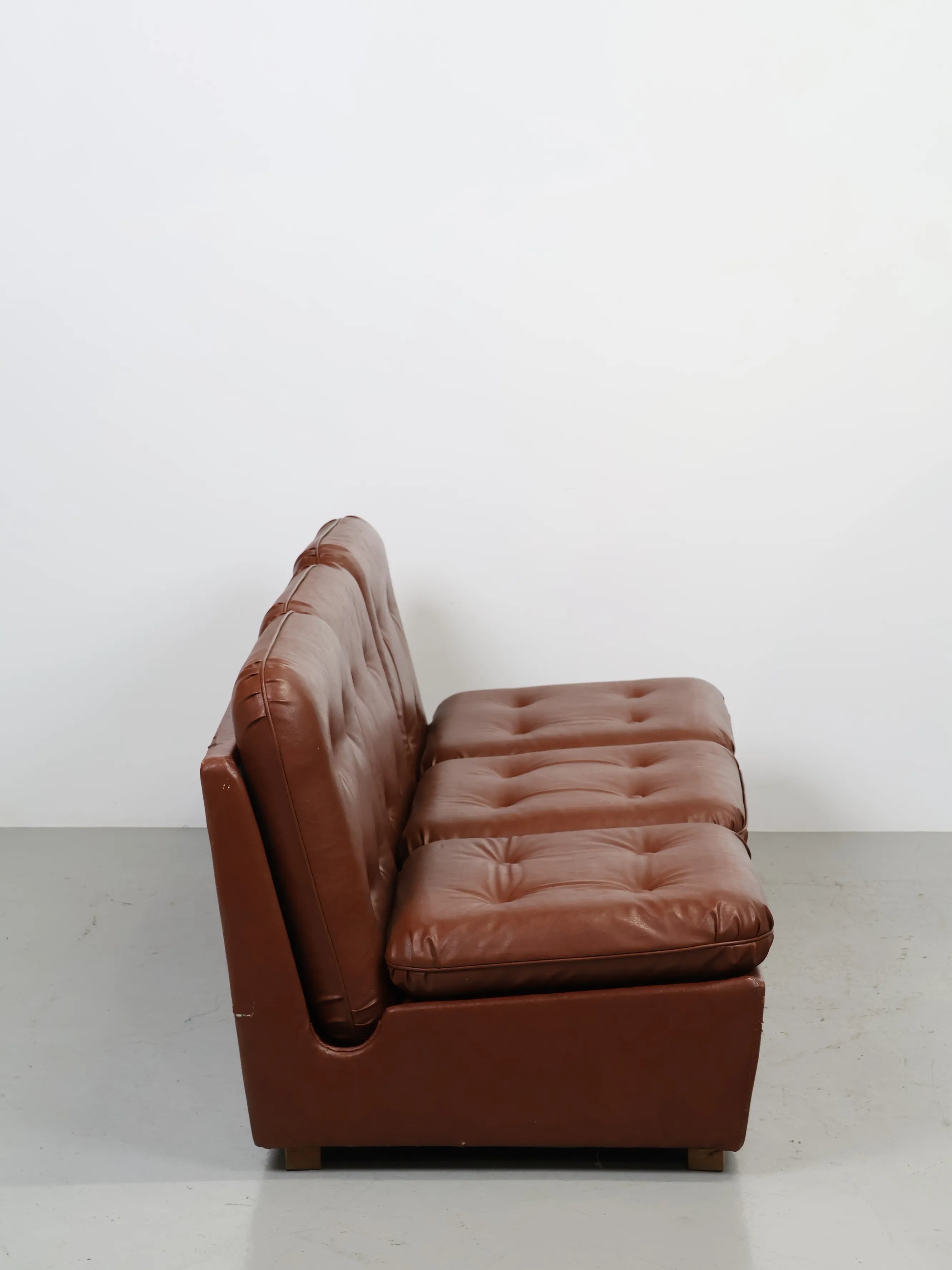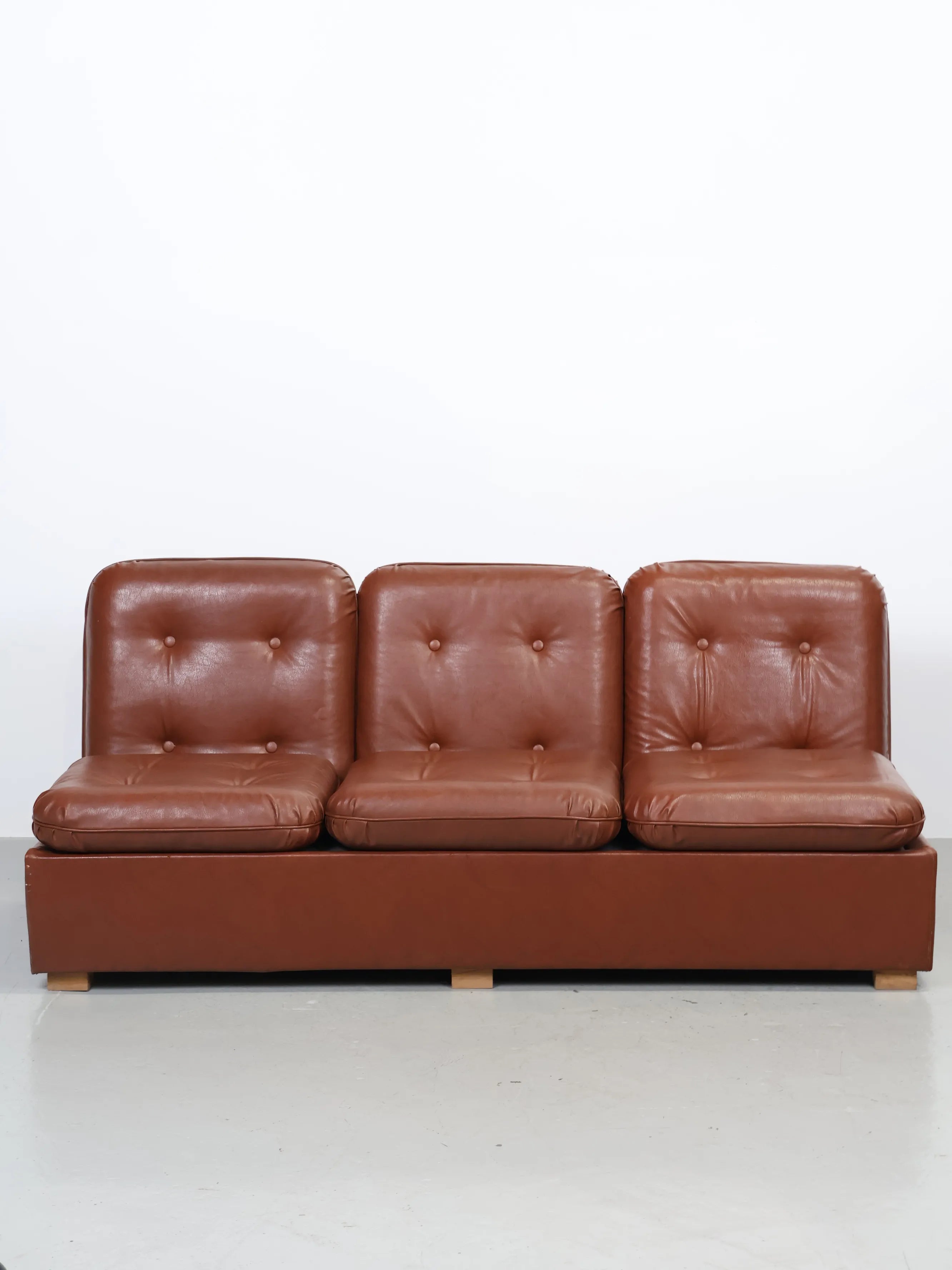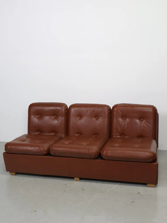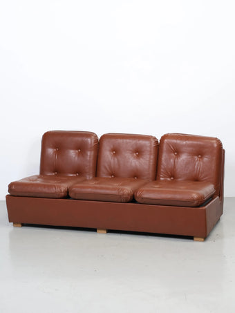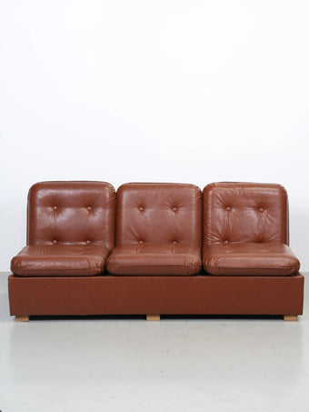 ハンガリーより買い付けました1970年代のブラウンレザー3シーターソファです。
