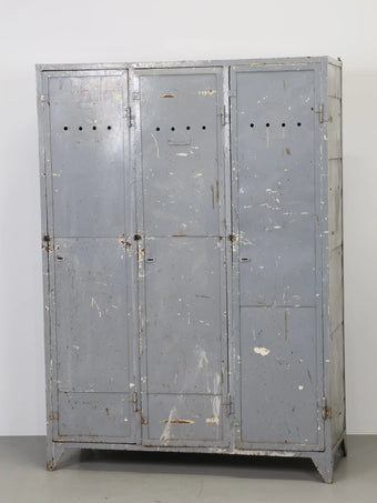 1940 - 50年代 ヴィンテージ グレーペイント メタル 3ストレージ ロッカー