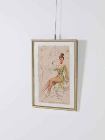 1947年 Knute Munson作 ヴィンテージ ピンナップガール フレーム 2月カレンダー