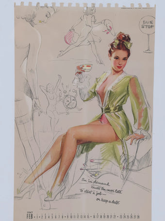 pin-up girl アーティストとして有名なKnute Munson作が描いた1947年2月のカレンダー。