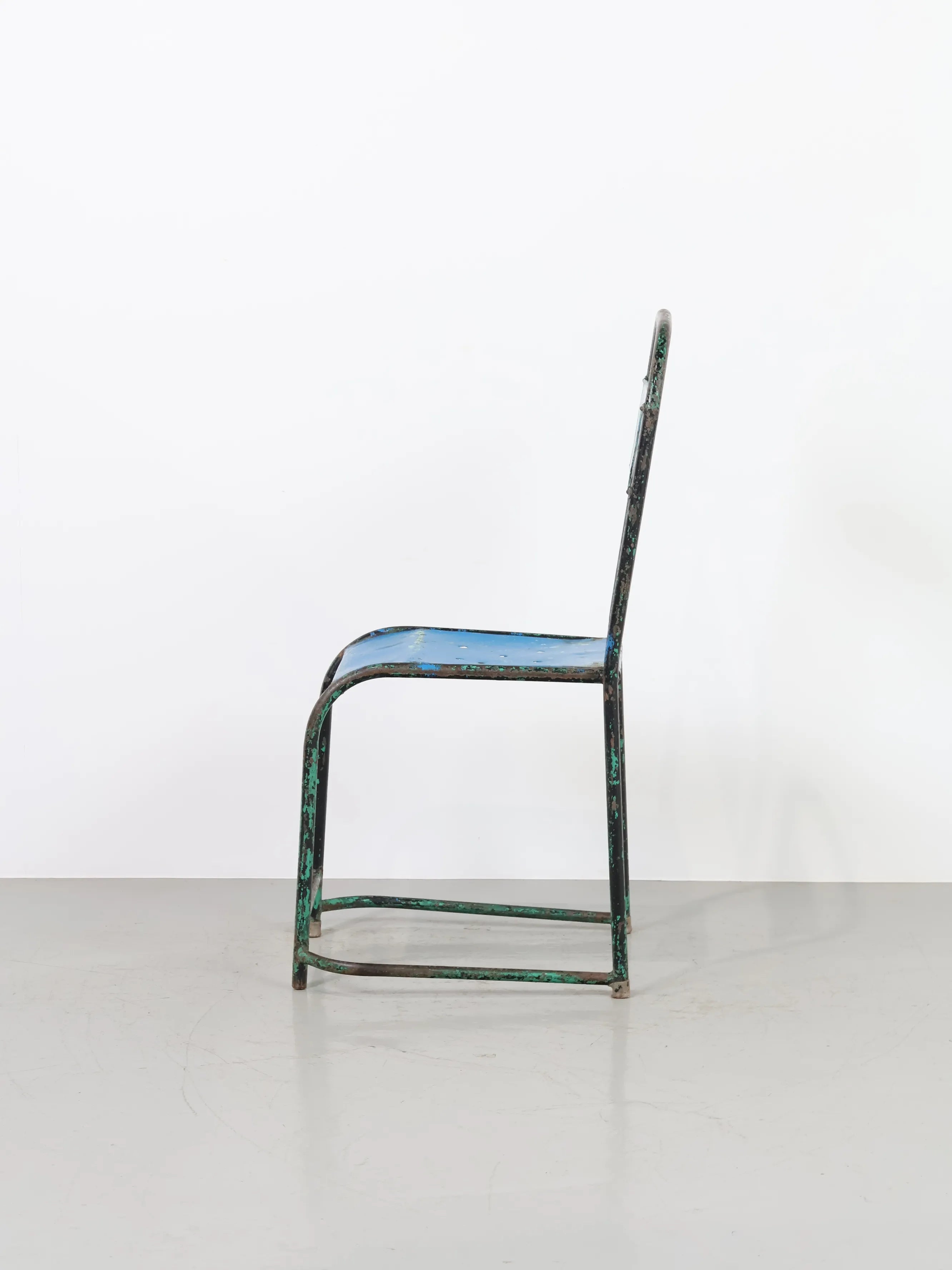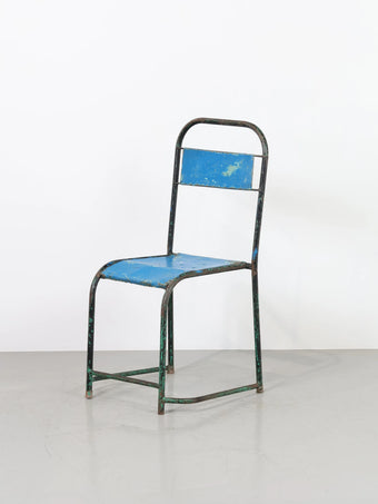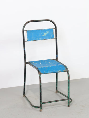 - 品名:ヴィンテージ ブラックフレーム ブルー メタル チェア