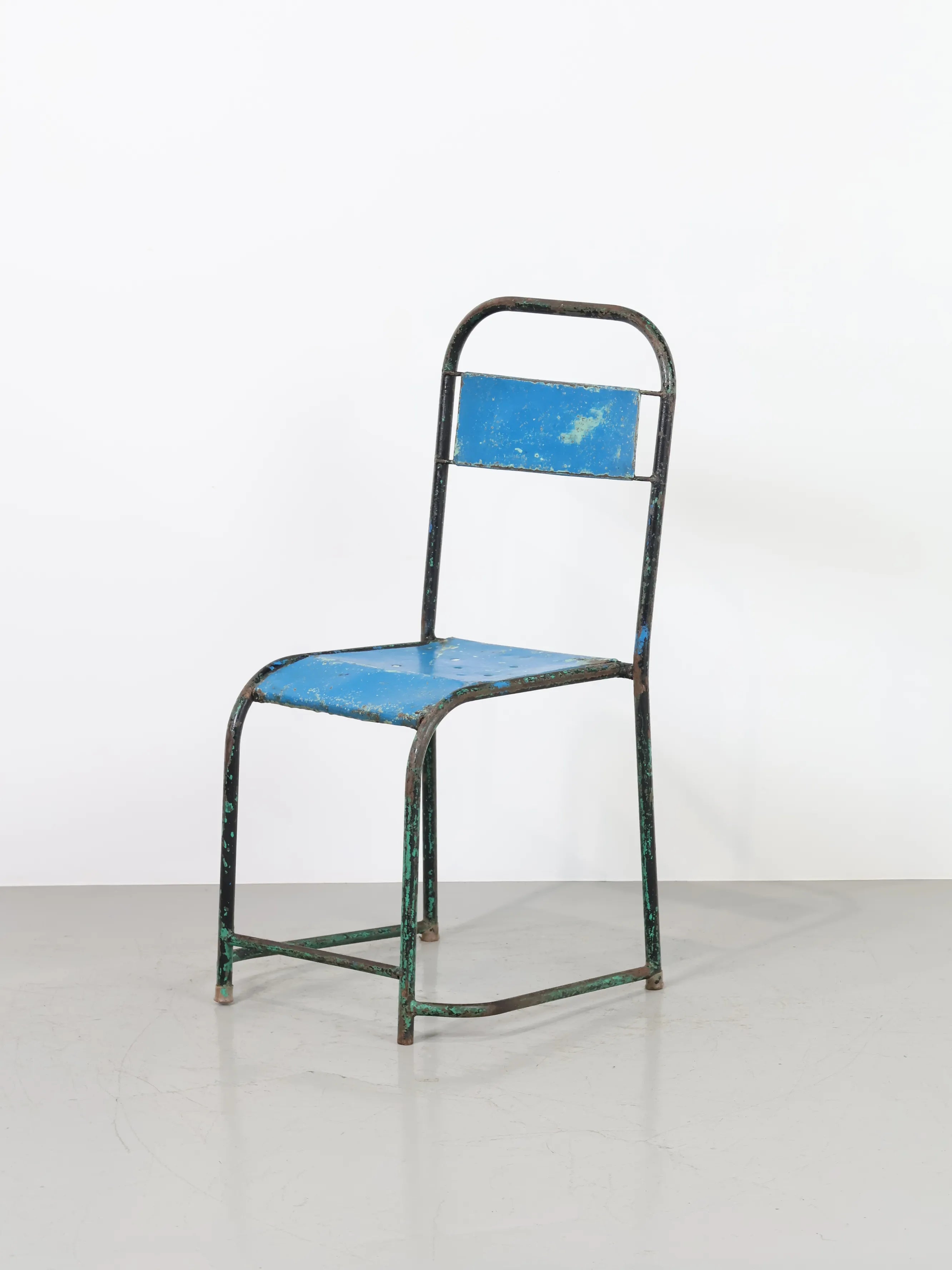 オランダより買い付けました1950年代-1960年代のブラックフレームブルーメタルチェアです。