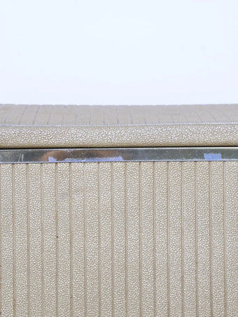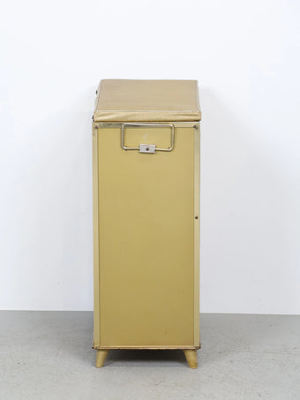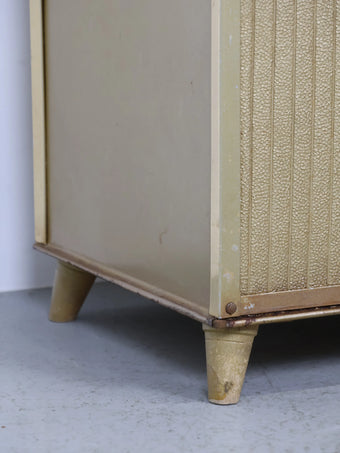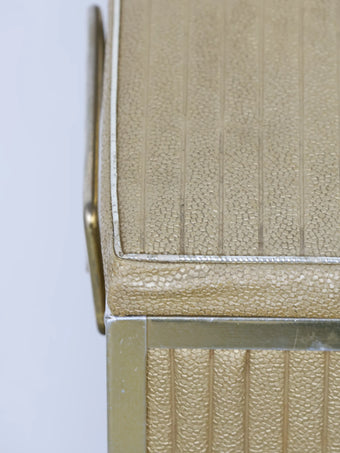 正面と側面にゴールドのビニールレザーが貼られたエレガント且つレトロなデザイン。