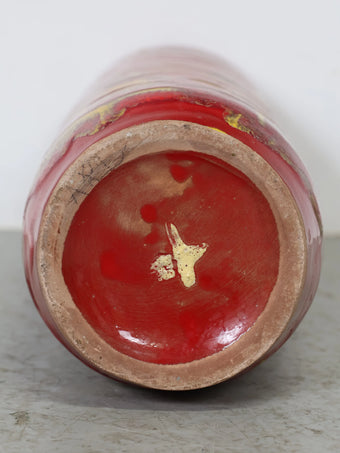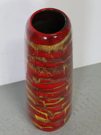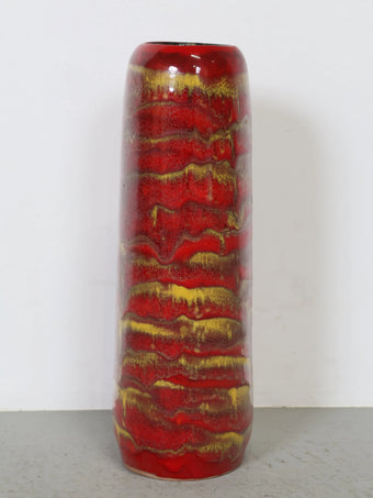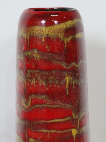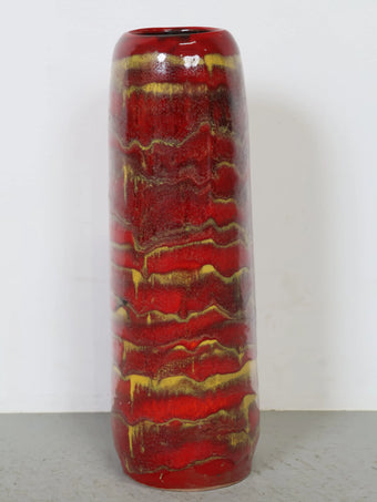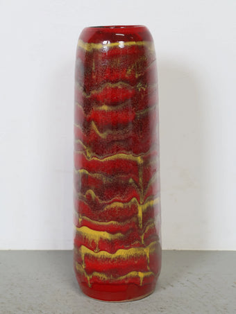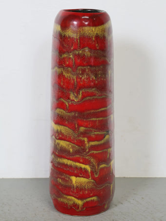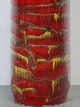 1960-70年代 ハンガリー製 セラミック 花瓶 ロングベース レッド×イエロー ドリップ釉 ヴィンテージ 東欧陶器 フラワーベース
