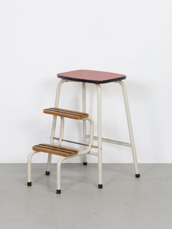 オランダより買い付けました1960年代-70年代のホワイトメタルフレームレッドペイントウッドステップスツールです。