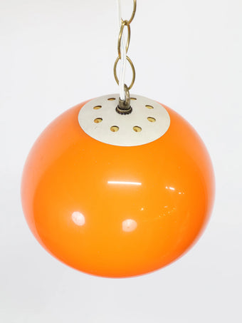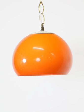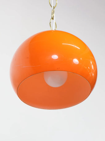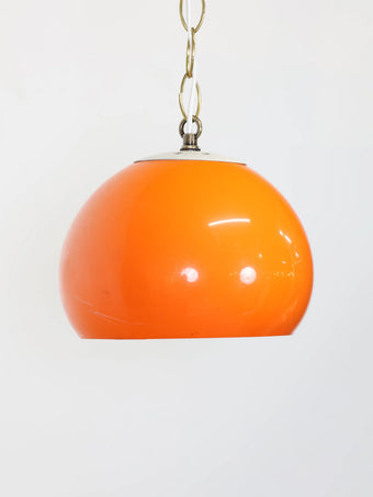 1970年代 ヴィンテージ オレンジプラスチック ペンダントライト 半球 ミッドセンチュリー スペースエイジ 吊り下げランプ レトロ 天井照明
