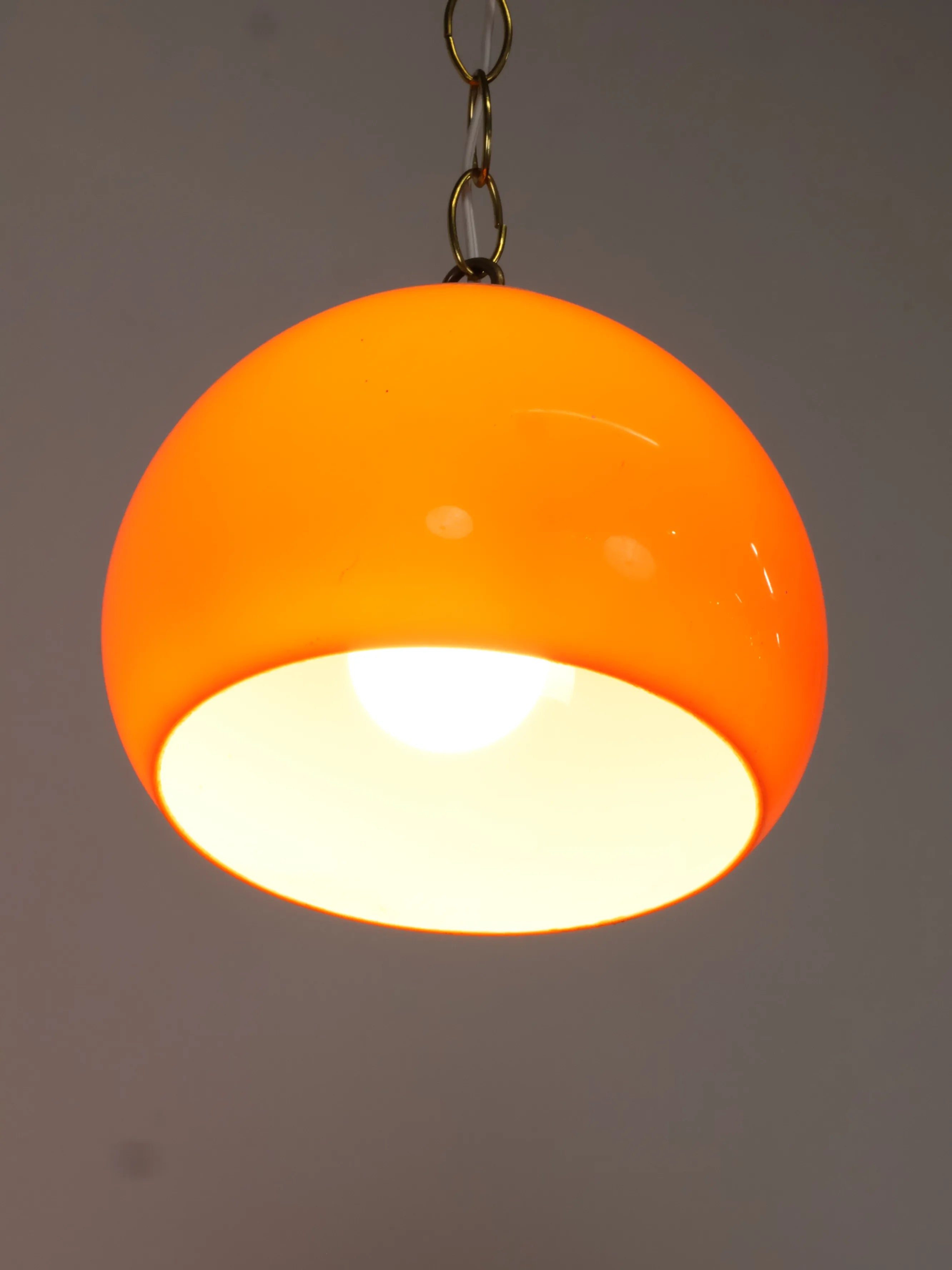 オレンジのペンダントライトは、ヨーロッパを中心に1960〜70年代に多く生産され、現在もヴィンテージ市場で人気の高いアイテムです。