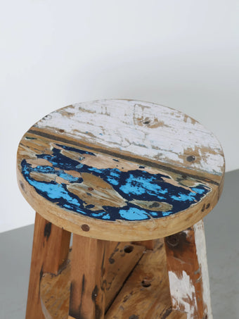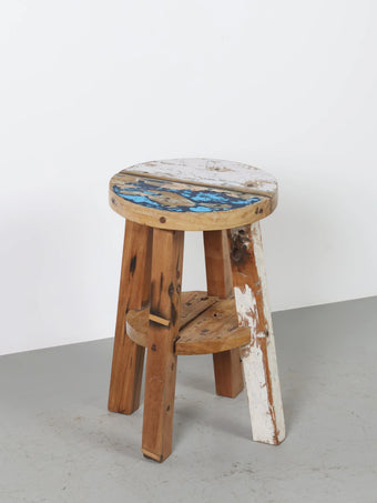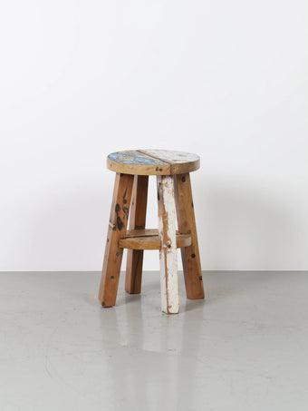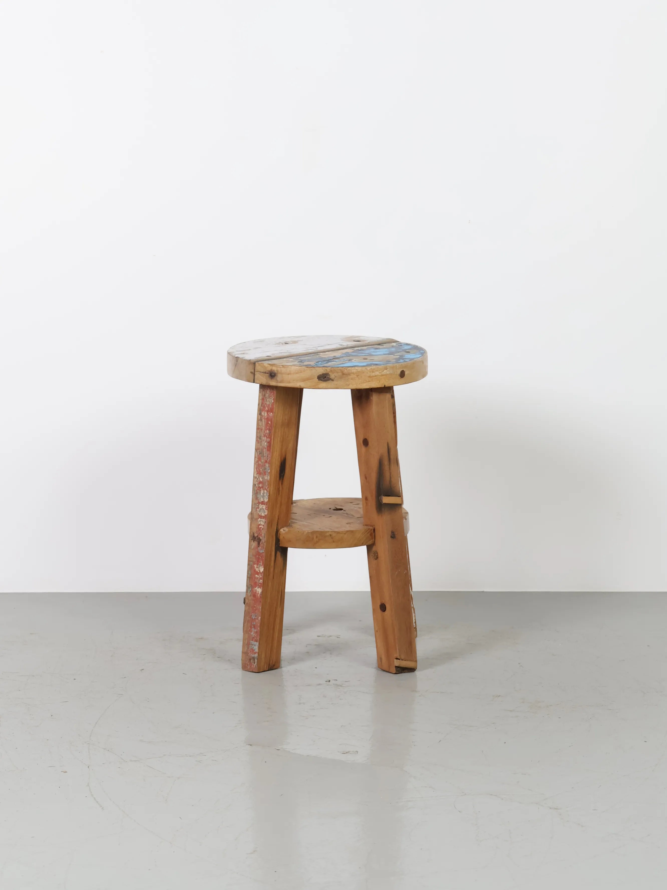 ベーシックなフォルムで無造作にペイントされている唯一無二のラウンド型木製スツール。
