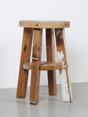 ヴィンテージ ウッド ラスティック ラウンド スツール