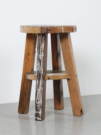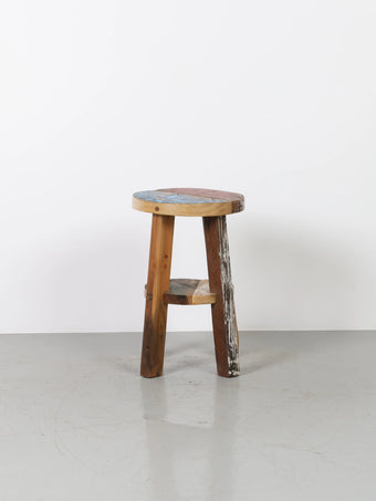 ヴィンテージ ウッド ラスティック ラウンド スツール